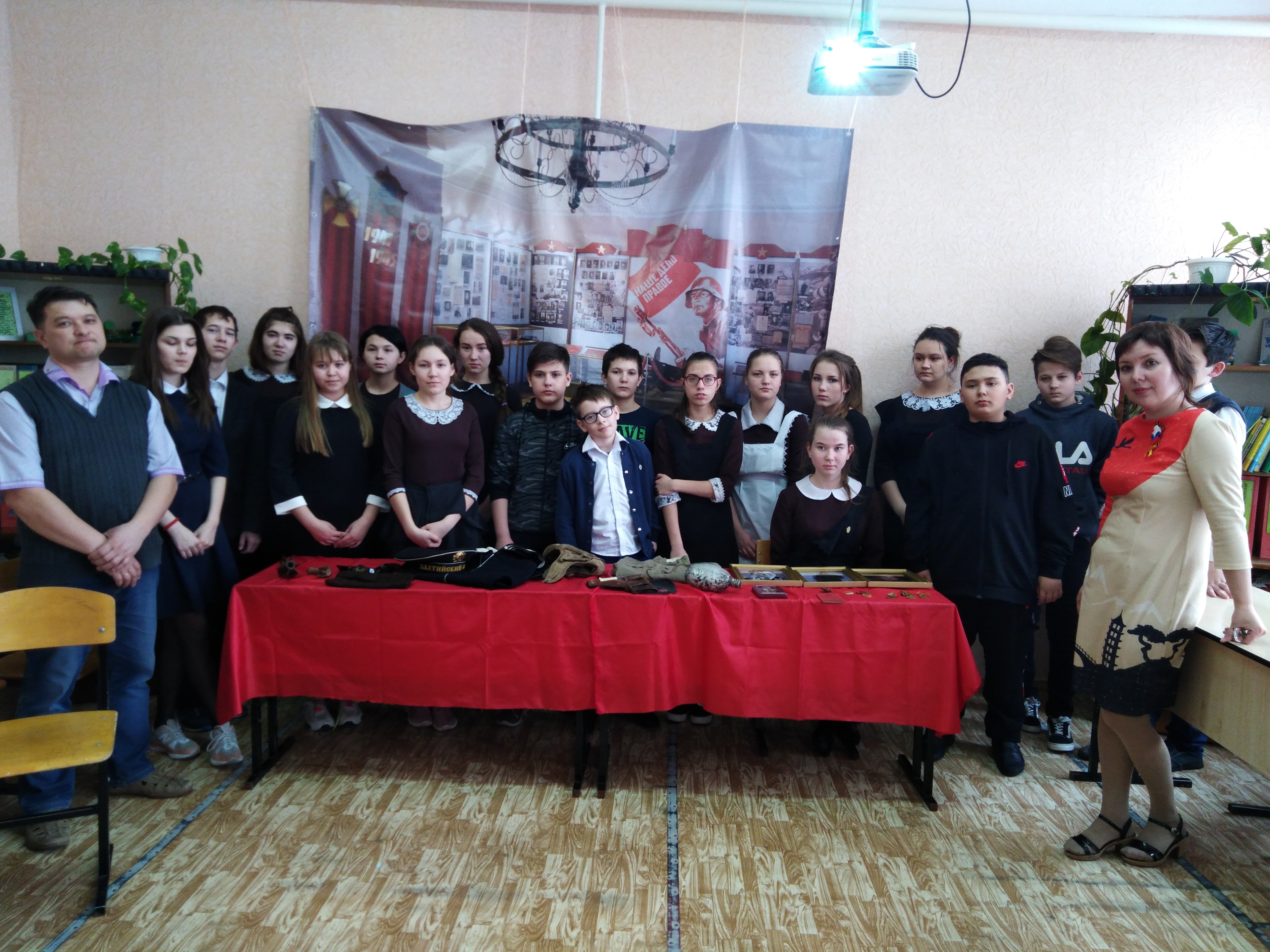 4 марта для учащихся Савалеевской и Светлоозерской сельских школ прошел необычный урок истории «Сталинград: 200 дней мужества и стойкости», посвященный празднованию 75-летия великой Победы и 100-летия ТАССР. Педагогами для ребят стали сотрудники Заинского краеведческого музея. Незадолго до мероприятия, желающие могли заглянуть в книги Памяти чтобы узнать о своих близких, воевавших на фронтах Великой Отечественной войны. Рассказ ведущей, кадры документальной кинохроники, песни военных лет для многих ребят прозвучали в первый раз, ведь к сожалению не так много в учебниках российской истории отведено теме Великой Отечественной войны. Достучаться до генетической памяти, рассказать о Сталинградской битве и ее участниках, поисковое движение– перед нами стояло множество задач. В небольшом зале можно было увидеть, выставку боевых реликвий, найденные клубом «Гвардия» во время поисковых экспедиций. Для непосвященных, на первый взгляд не так заметен небольшой солдатский медальон, а ведь именно он является мечтой каждого поисковика- шанс вернуть имя бойца.