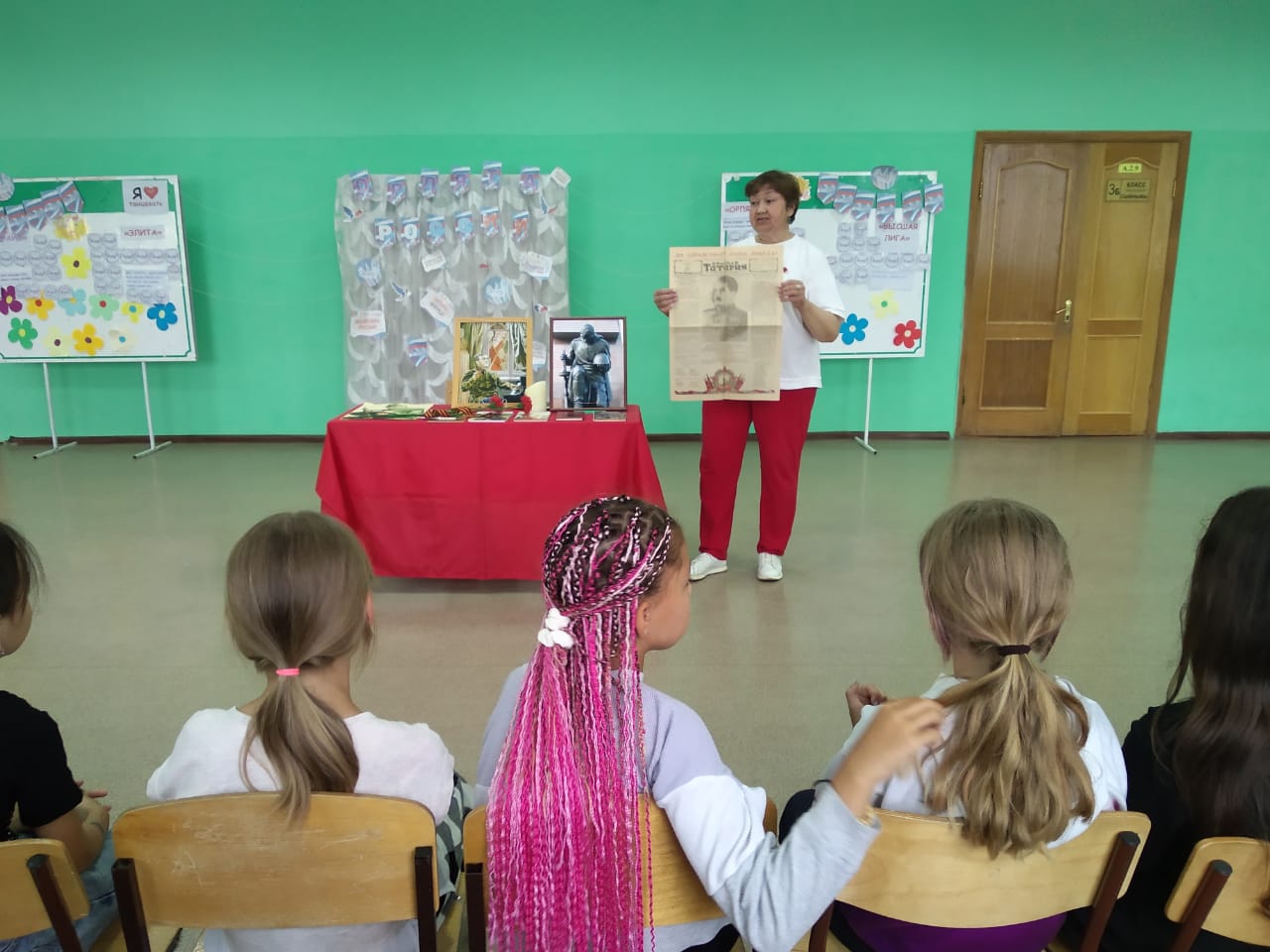 В День памяти и скорби в летнем лагере при СОШ№2 сотрудник Карабашской поселковой библиотеки-филиала №12 провела урок мужества, рассказала юным слушателям о произведениях, созданных в годы Великой Отечественной войны. История песни «Священная война», которую называют песня-воин, песня-пророк представила детям события той далекой военной поры. Библиотекарь провела обзор книг о войне, авторы которых писатели – фронтовики: К.Симонов «Третий адъютант», С.Алексеев «Рассказы о войне». Ребята вдохновенно исполнили песню «Катюша» и приняли участие во всероссийской акции «Свеча памяти». Наши деды и прадеды с честью выполнили свой долг перед Родиной и завещали нам хранить и оберегать ее.
