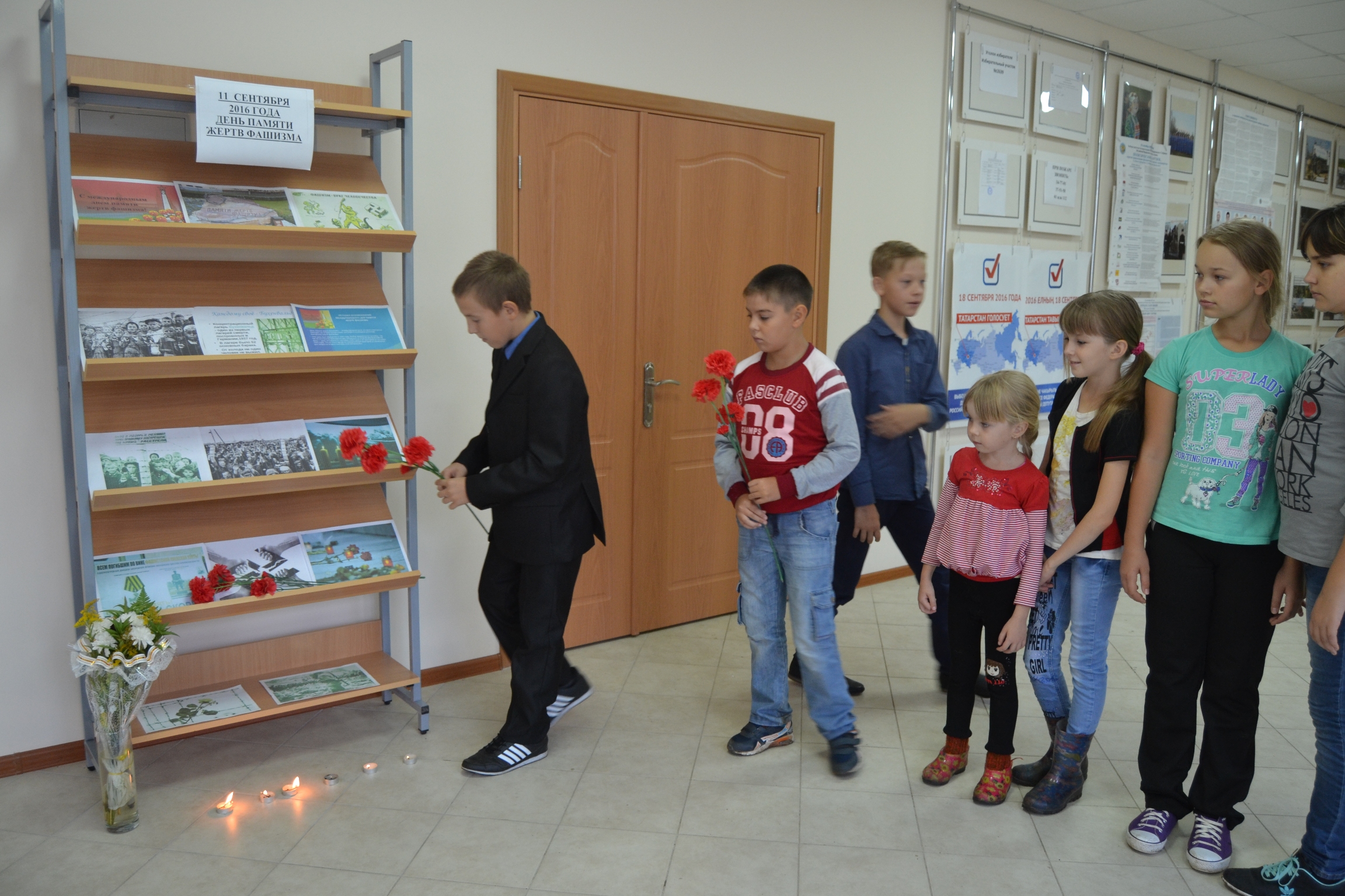 Отдавая дань памяти погибшим и мужеству солдатам Красной Армии, освободившим «лагеря смерти», учащиеся почтили память погибших минутой молчания, зажгли свечи памяти и возложили цветы.
