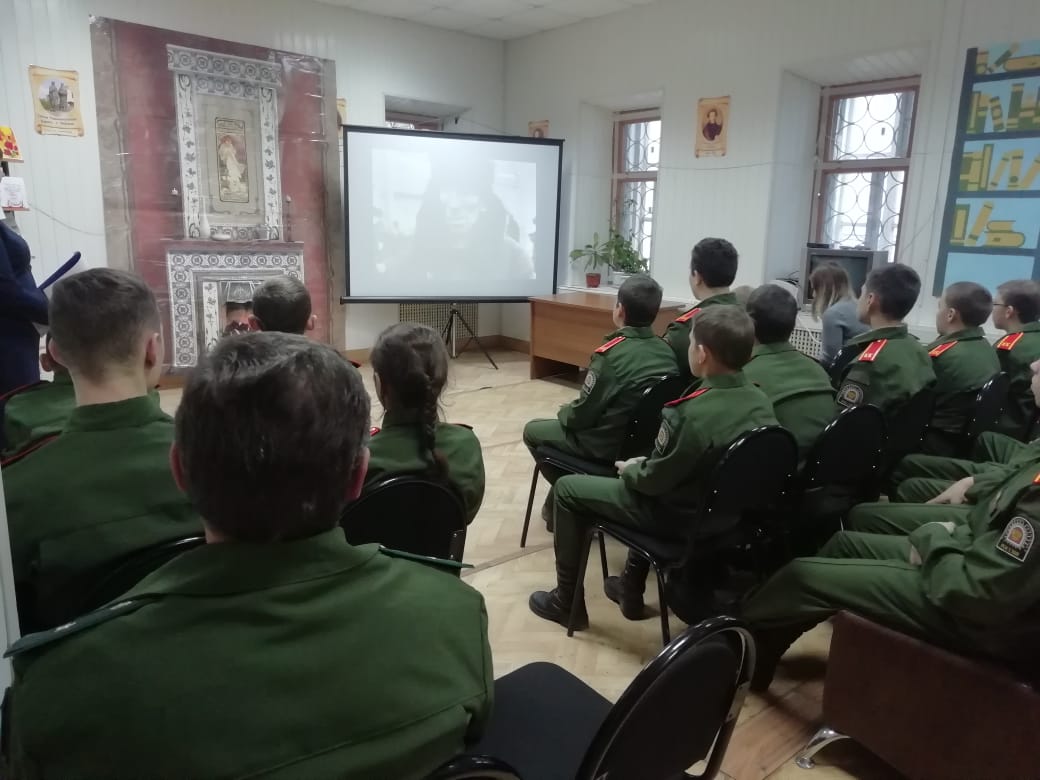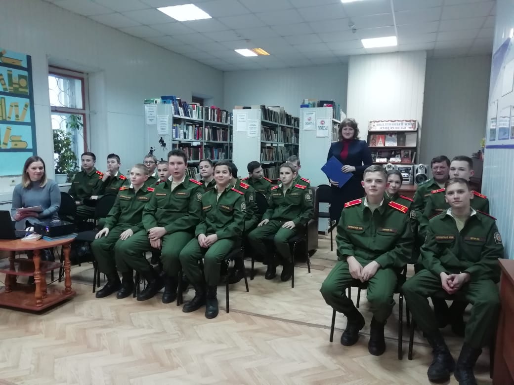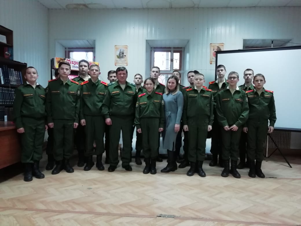 Кадеты 8 класса (воспитатель Вериялов В.Г.) посетили центральную библиотеку, где был проведен урок мужества «Огонь войны души не сжег». Перед ребятами выступила заведующая отделом обслуживания читателей Кириллова Евгения Сергеевна, рассказала о нашем земляке- Герое Советского Союза Елисееве Михаиле Григорьевиче, его подвиге в годы Великой Отечественной войны. Кадеты узнали о судьбе и подвиге Елисеева М.Г., который прославил наш край своим мужеством, смелостью и героизмом. Нашему земляку в Волжске установлен бюст. Рассказ сопровождался показом мультимедийной презентации «Время уходит, с нами остается память».