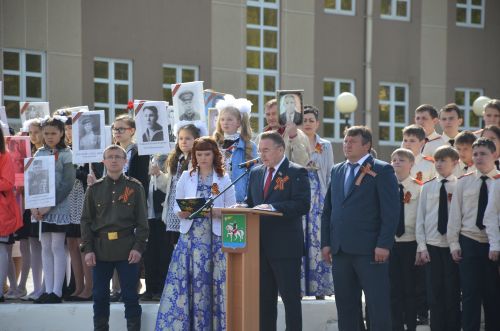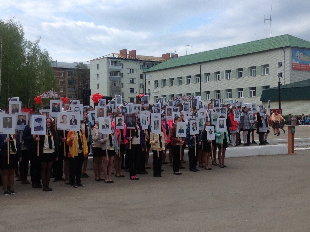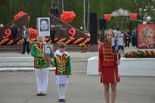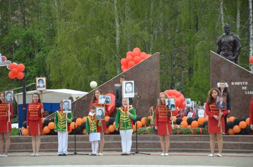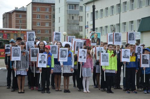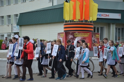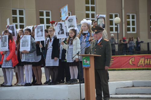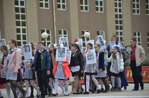 По площади прошли 250 учащихся с фотопортретами родных и близких – участников войны и тружеников тыла. Под каждой фотографией – сведения о герое. Это еще раз доказывает, что подрастающее поколение помнит о подвиге отцов и дедов и гордится ими.