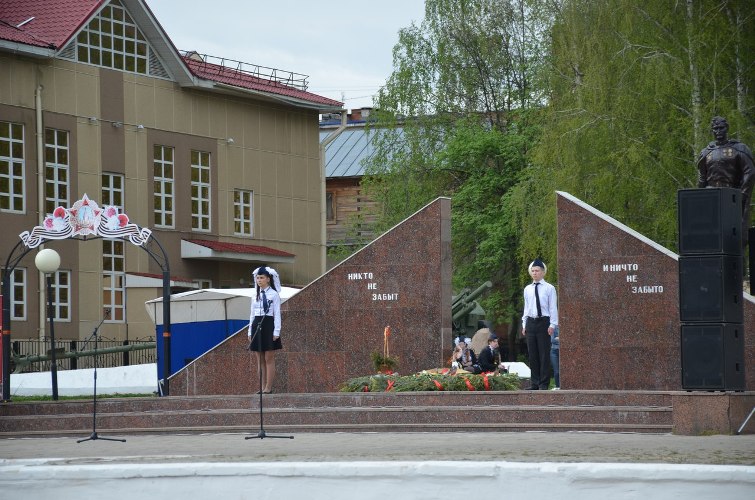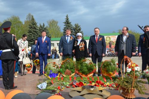 На торжестве в честь воинов, погибших на полях сражений в годы Великой Отечественной войны, умерших в госпиталях и ушедших от нас в мирное время, участников боевого и трудового фронтов, детей войны была объявлена минута молчания. К Вечному огню возложили цветы.