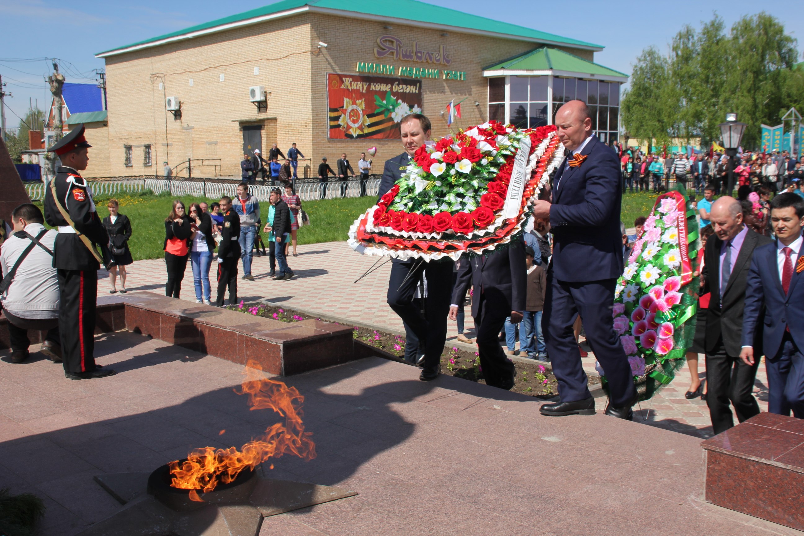 Участники торжества почтили, минутой молчания, светлую память погибших в боях с гитлеровским фашизмом. По завершении праздничного мероприятия состоялась церемония возложения цветов к мемориалу Вечного Огня, праздник продолжил концерт на площади перед парком Победы.