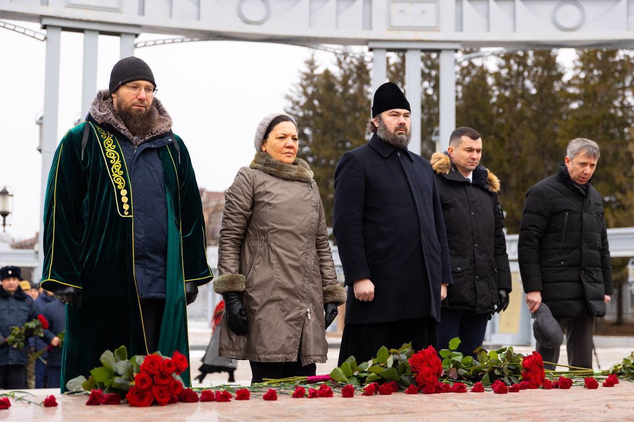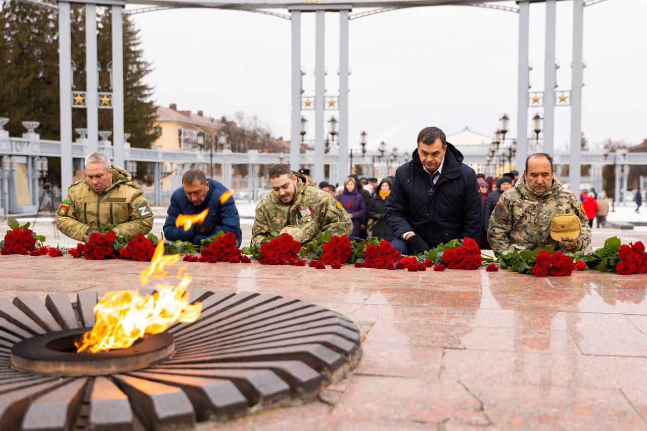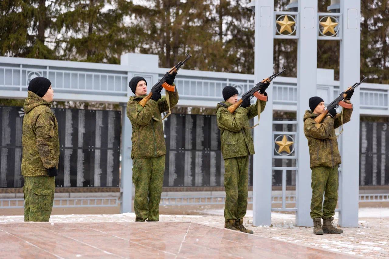 В Альметьевске прошла церемония возложения цветов к Вечному огню в честь Дня Героев Отечества