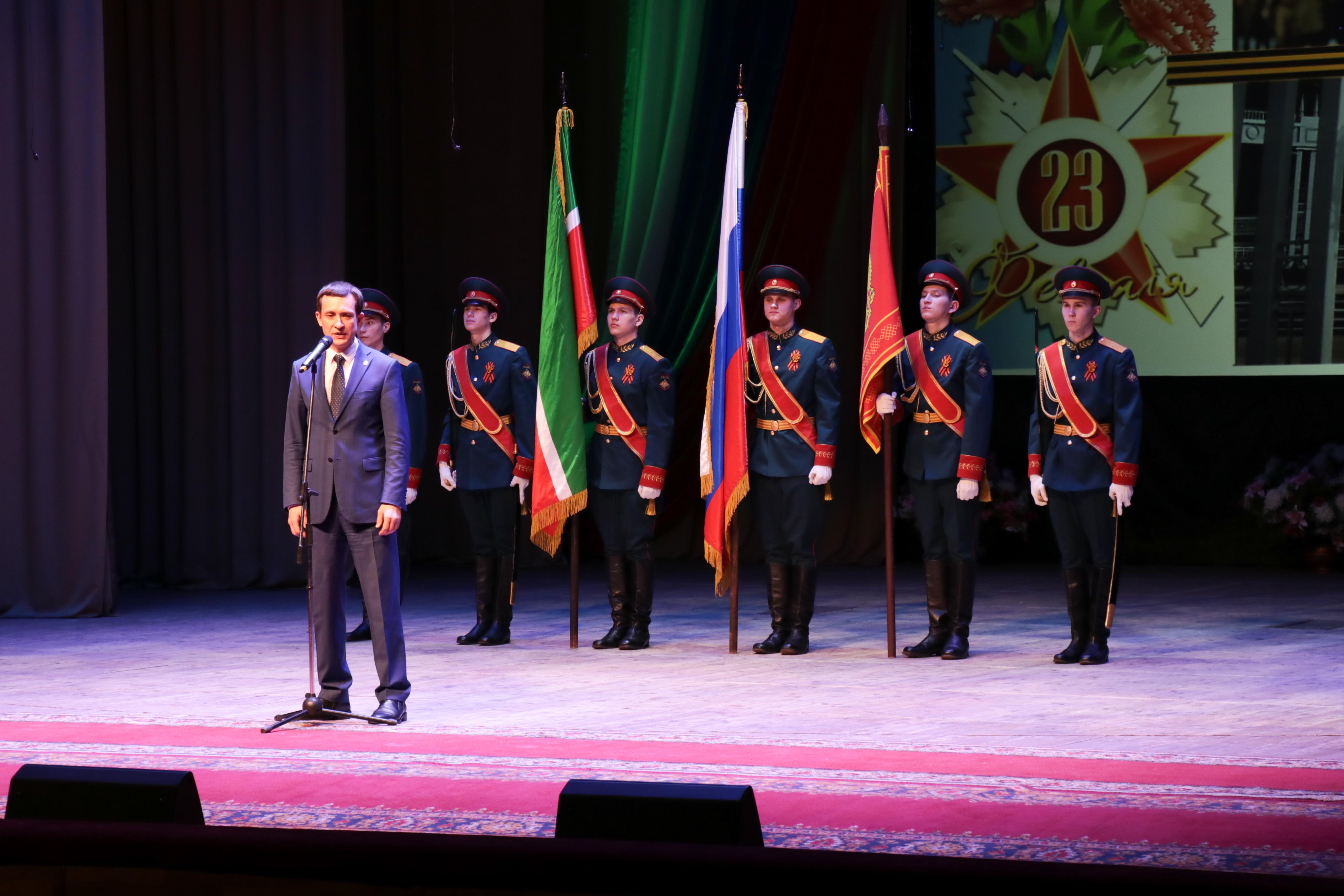 В своем поздравительном слове Глава района, старший лейтенант запаса Айрат Хайруллин отметил, что День защитника Отечества – это всенародный праздник, связанный с победами российского оружия на суше и на море, с традициями боевого братства, которые передаются от поколения к поколению, с мужеством и доблестью тех, кто с честью выполнил свой воинский долг и кто сегодня находится в рядах Вооруженных сил нашей страны, это день настоящих мужчин, защитников в самом широком смысле этого слова.