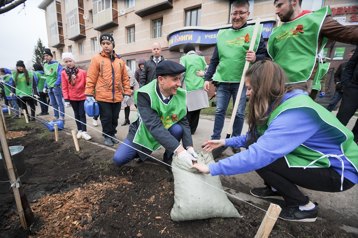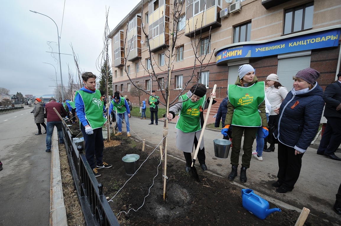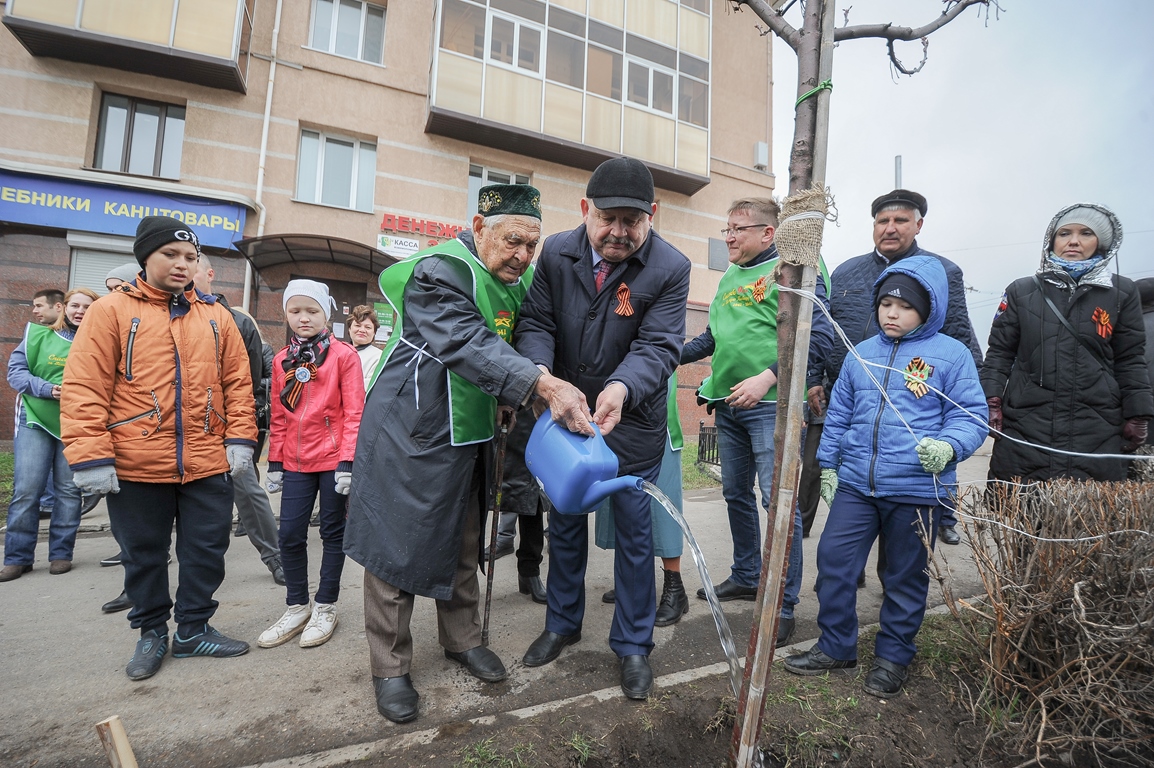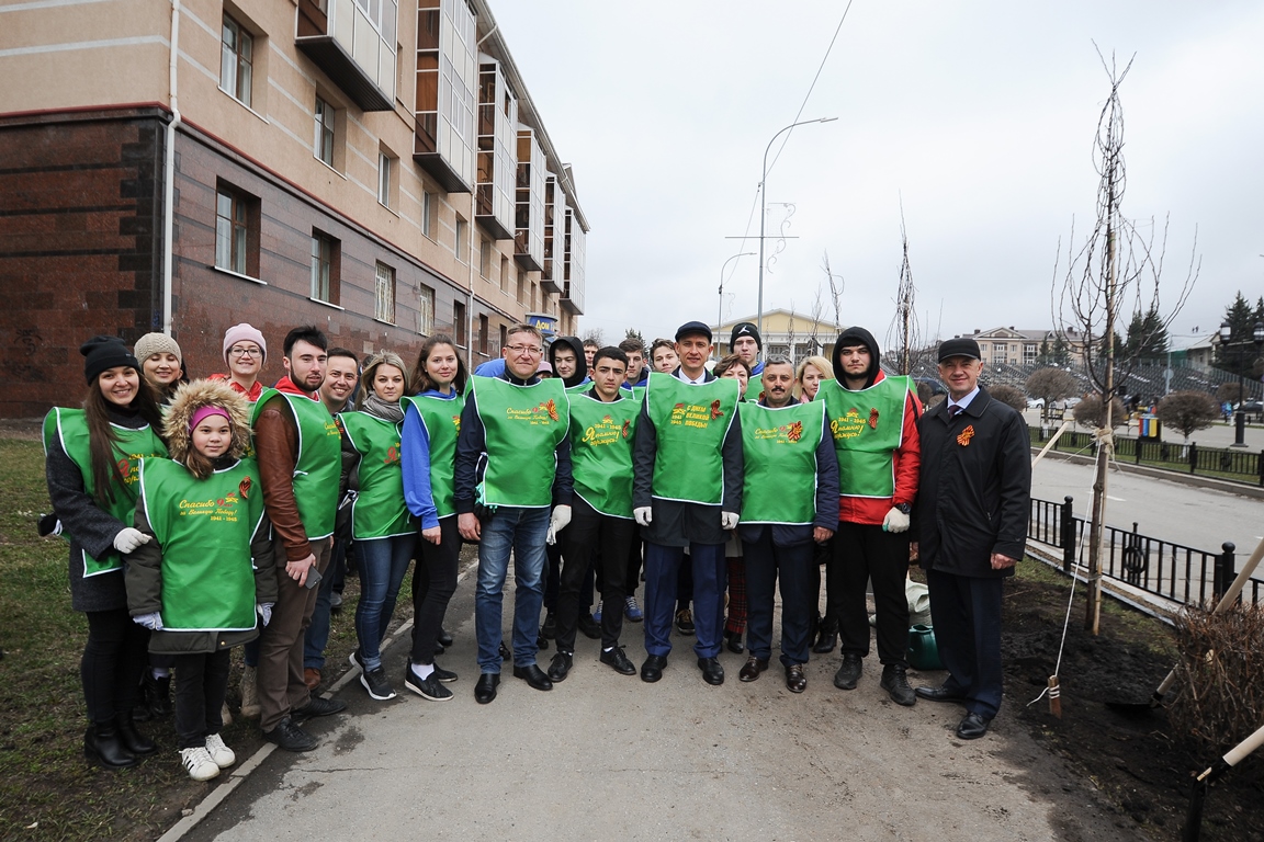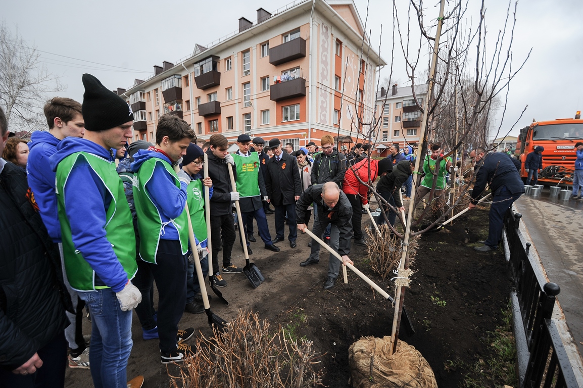 В праздничный День Весны и Труда по инициативе руководства города и района на улице Гагарина Альметьевска появилась новая аллея «Яблони Победы». 100 крупномерных деревьев было высажено на одной из самых красивых улиц города. В мероприятии приняли участие ветераны Великой Отечественной войны, труженики тыла, глава района Айрат Хайруллин, руководители и представители служб муниципалитета, молодежных и общественных организаций.