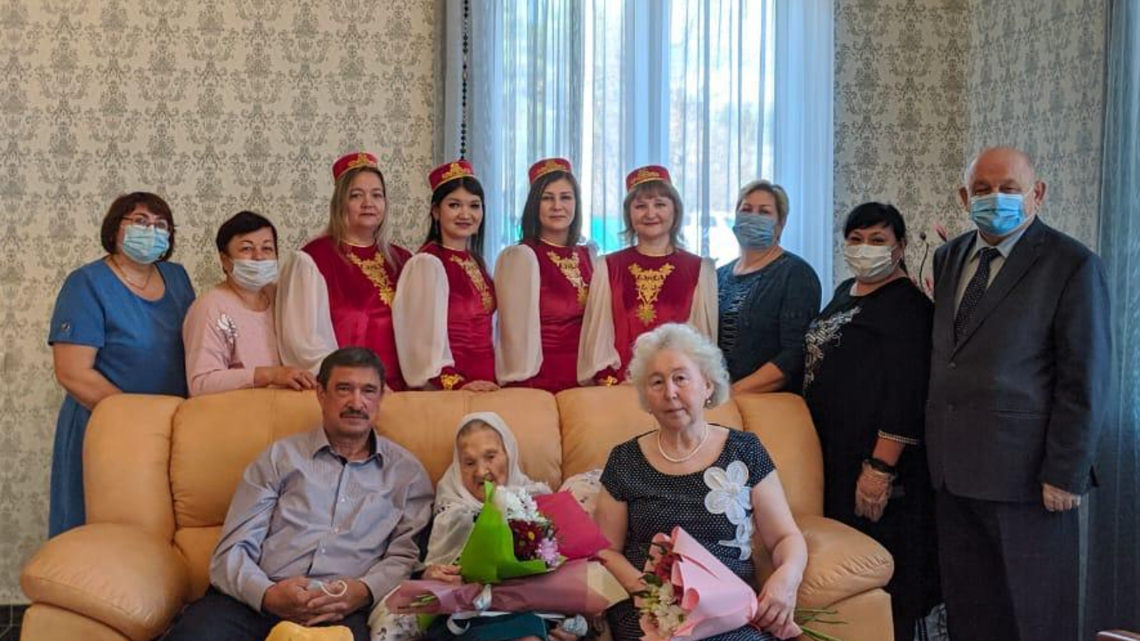 Поздравить долгожительницу сегодня в село Новое Каширово приехали руководитель аппарата Совета Альметьевского района Роза Афлятунова, председатель Совета ветеранов Василий Самойлов, начальник Управления социальной защиты Кадрия Гиматдинова.