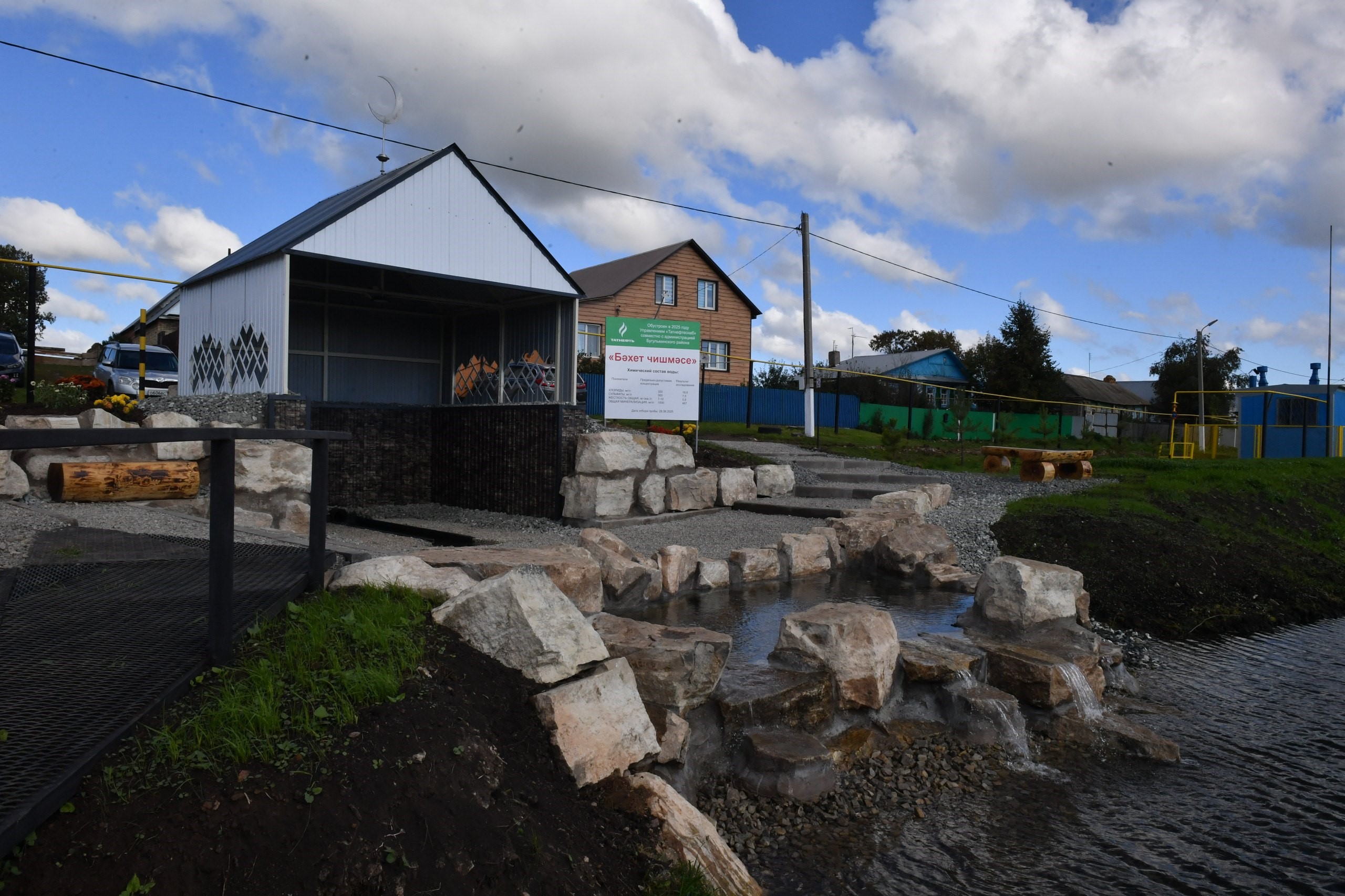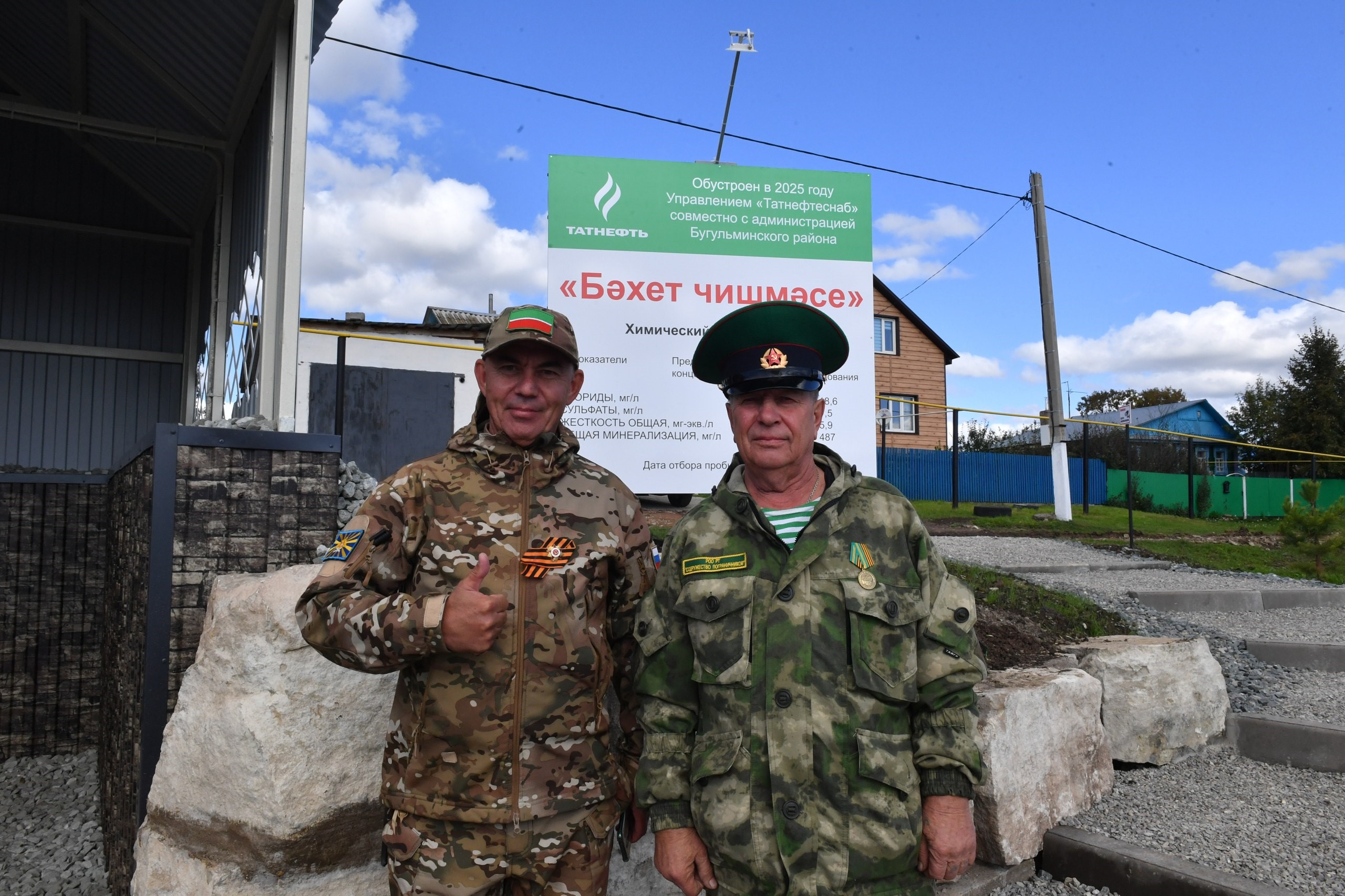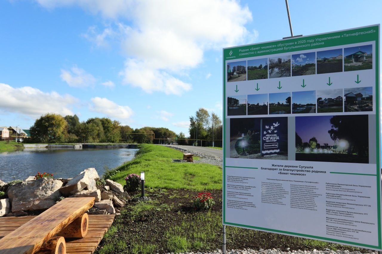 Сегодня в деревне Сугушла Староисаковского сельского поселения Бугульминского муниципального района состоялось торжественное открытие родника «Бәхет чишмәсе» («Источник счастья»). Его благоустроили в рамках конкурса ПАО «Татнефть» в год 80-летия Победы в Великой Отечественной войны. Комплексный объект посвящён памяти бугульминца, Героя Советского Союза Газинура Гафиатуллина, который родился в этой деревне и отсюда ушел на фронт. Благодаря поддержке компании «Татнефть» управлением «Татнефтеснаб» проведены масштабные работы реконструкции объекта. Здесь очистили территорию, обновили ландшафт, завезли грунт, привели в порядок мост через водоём, усилили дамбу и построили накопитель воды. Над родником установили навес, соорудили пирс. Вдоль водоема теперь есть благоустроенная прогулочная площадка с освещением. Появилась новая детская площадка, скамейки для отдыха. Высажено 140 молодых сосен. Благодаря поддержке Раиса Татарстана Рустама Минниханова выполнен капитальный ремонт дороги по улице Гафиатуллина с обустройством территории возле мечети и парковочной зоны. За активное участие в социальном проекте по благоустройству родника и его прилегающей территории были вручены благодарственные письма Совета Бугульминского муниципального района главе Староисаковского сельского поселения Эльмире Каримовой, начальнику Бугульминской базы управления «Татнефтеснаб» Игорю Серякову и другим сотрудникам организации.