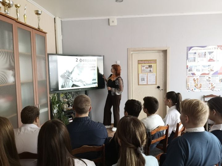 В рамках данного дня советники по воспитанию Бугульминского района провели в школах и СПО города множество мероприятий. Прошли кинолектории, «Дорогами побед» — виртуальные экскурсии, классные часы и уроки мужества. Торжественно прошли мероприятия «Непокорённый Сталинград», выставки материалов и интерактивных плакатов «На улицах Сталинграда».