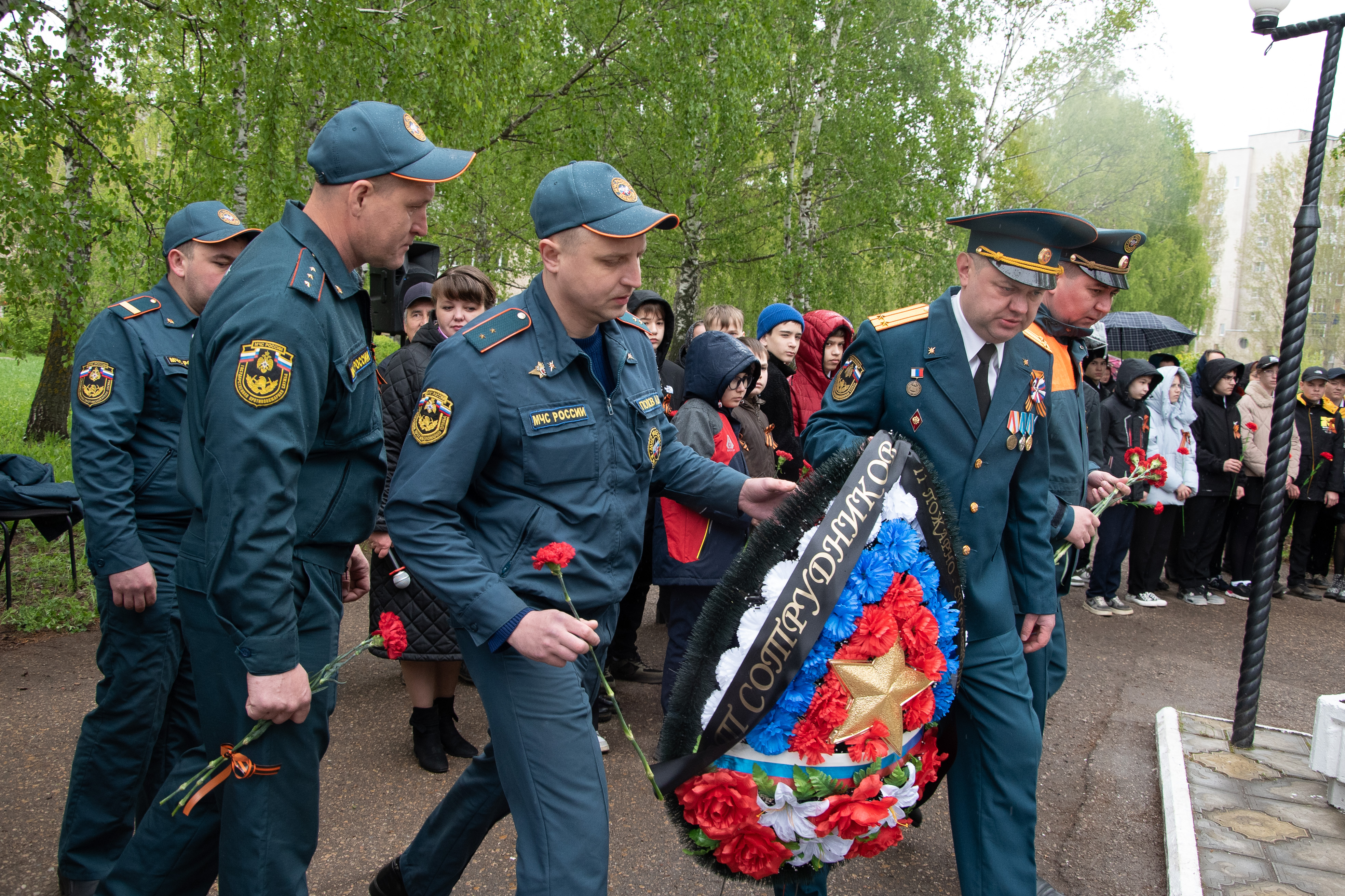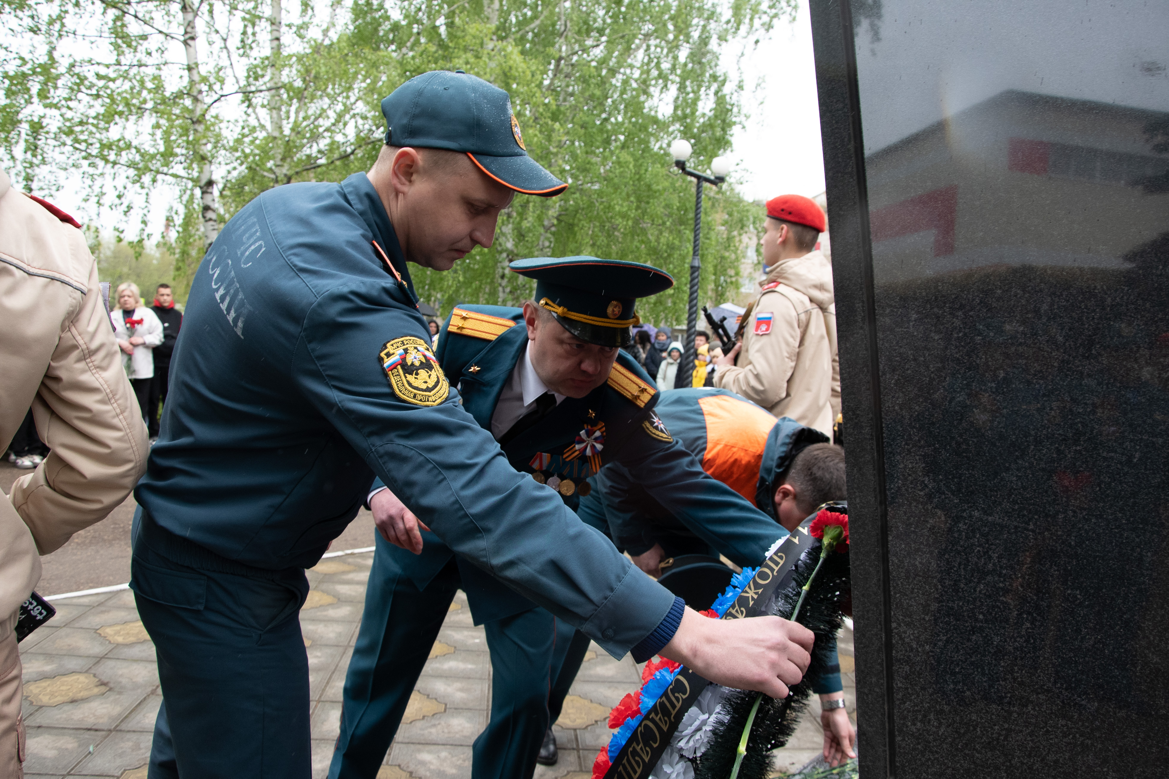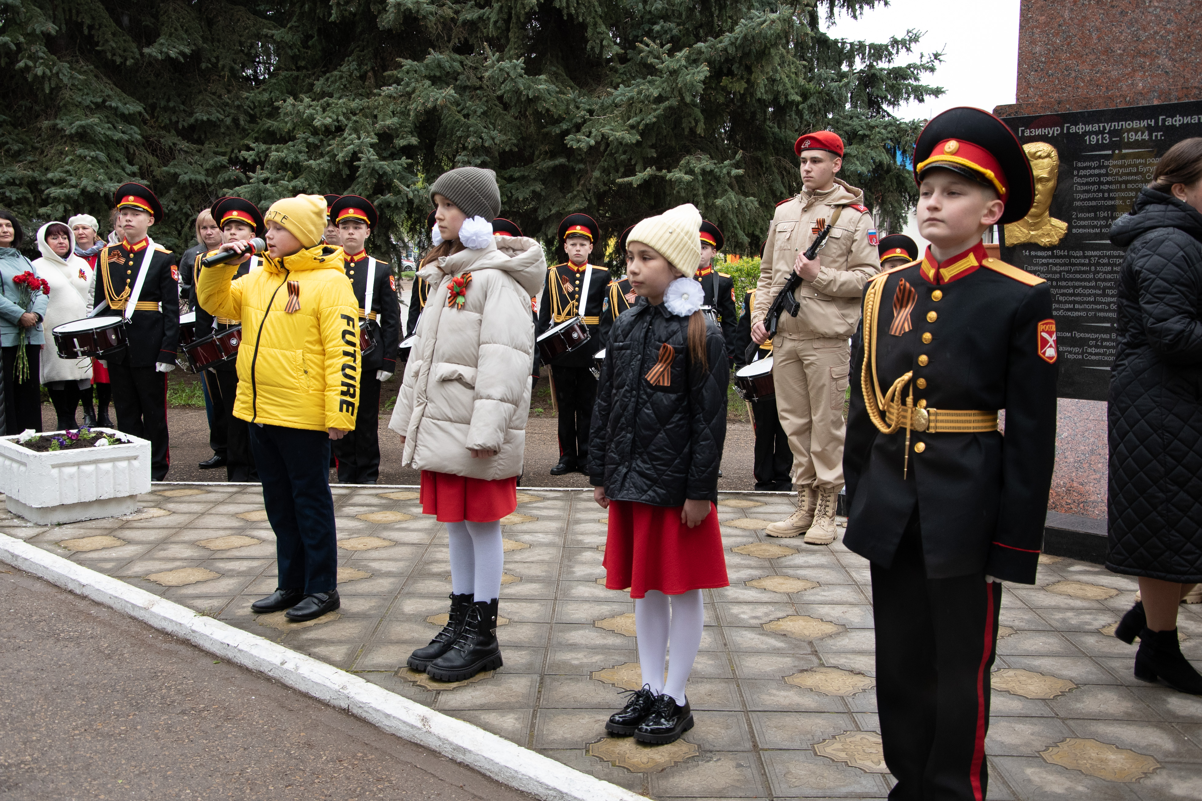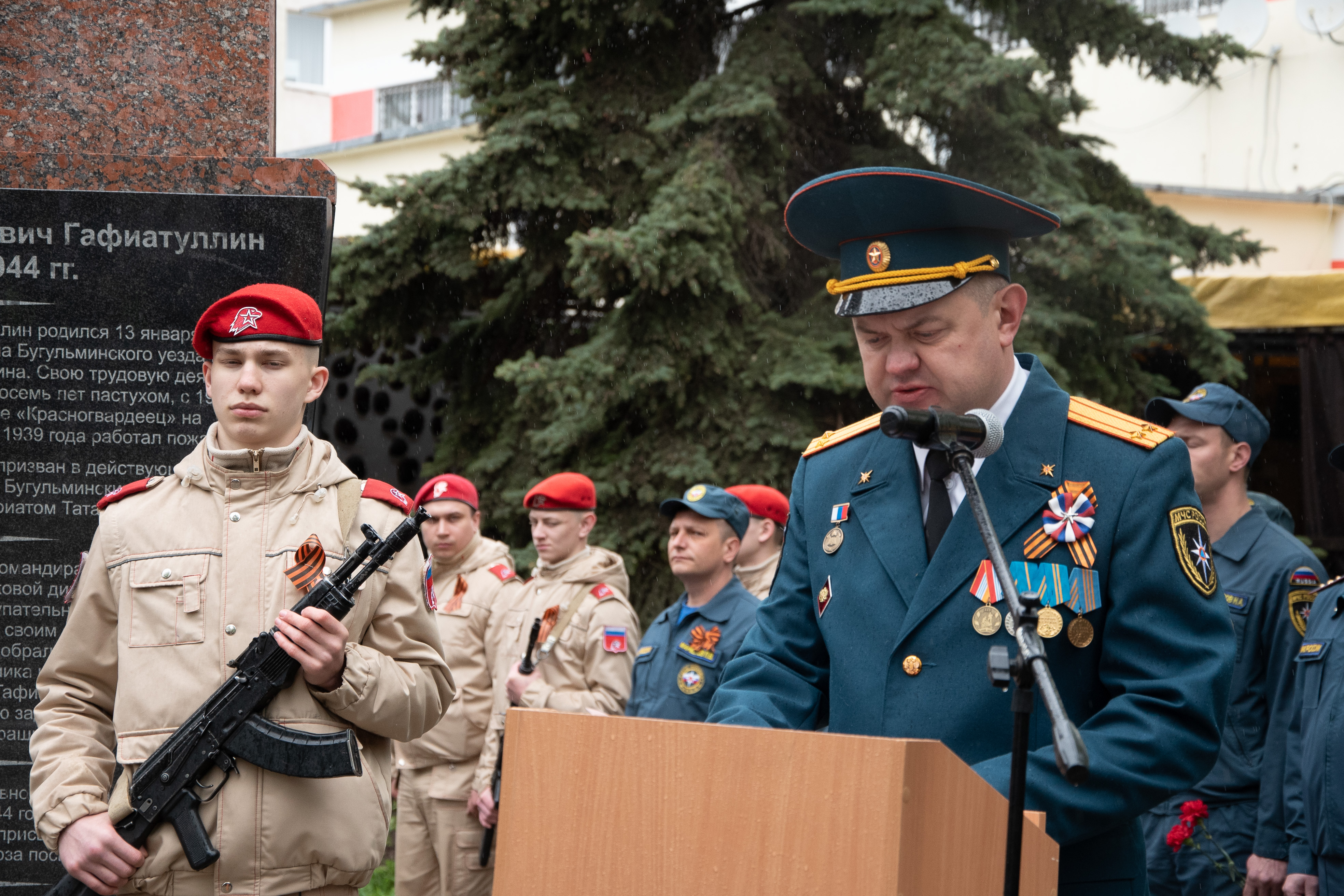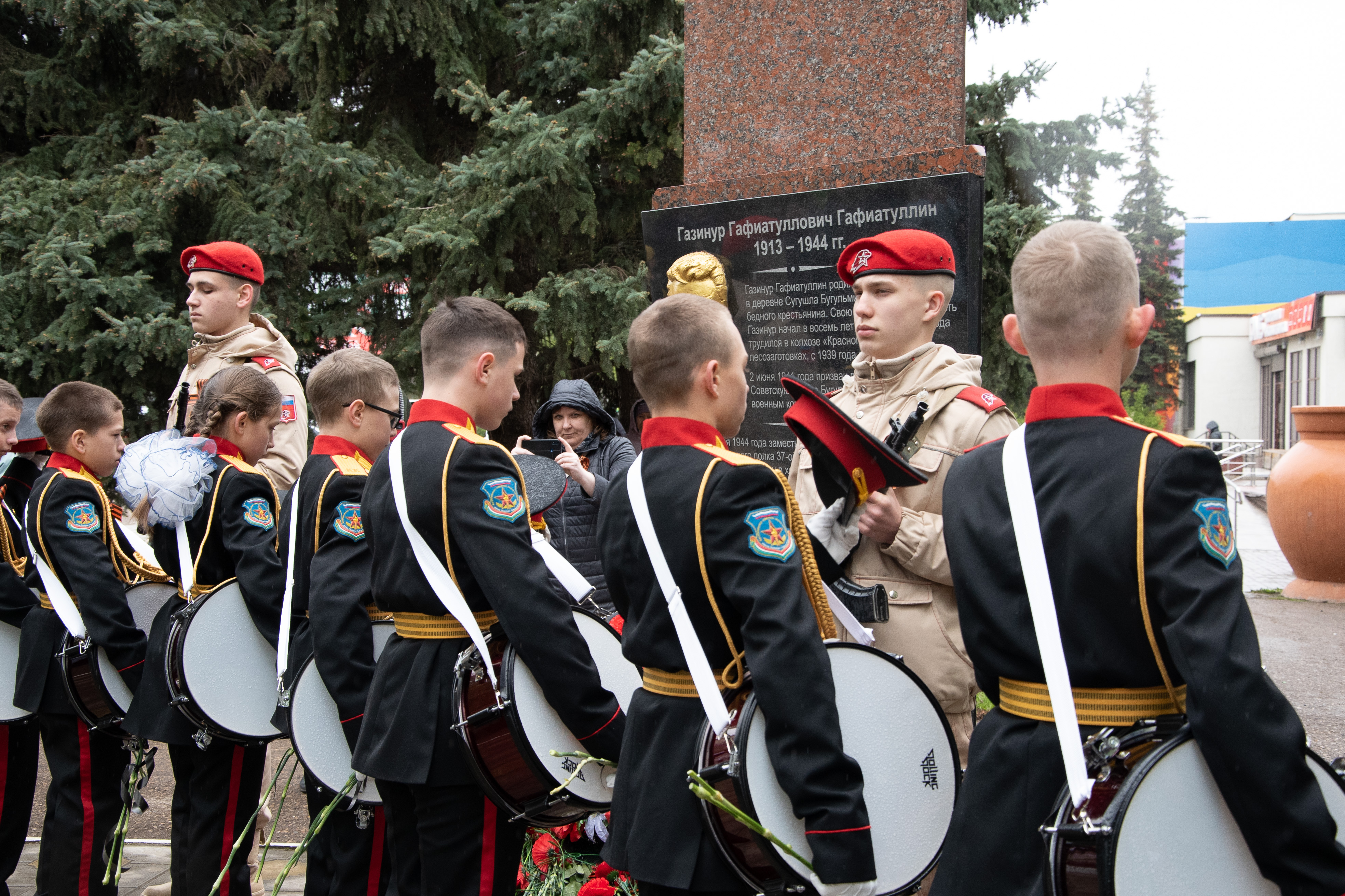 Накануне 79-й годовщины Победы советского народа в Великой Отечественной войне в Бугульме у Стелы Газинуру Гафиатуллину состоялся торжественный митинг. Кадеты, сотрудники МЧС, представители местной власти, школьники почтили память пожарного, Героя Советского Союза Газинура Гафиатуллина.