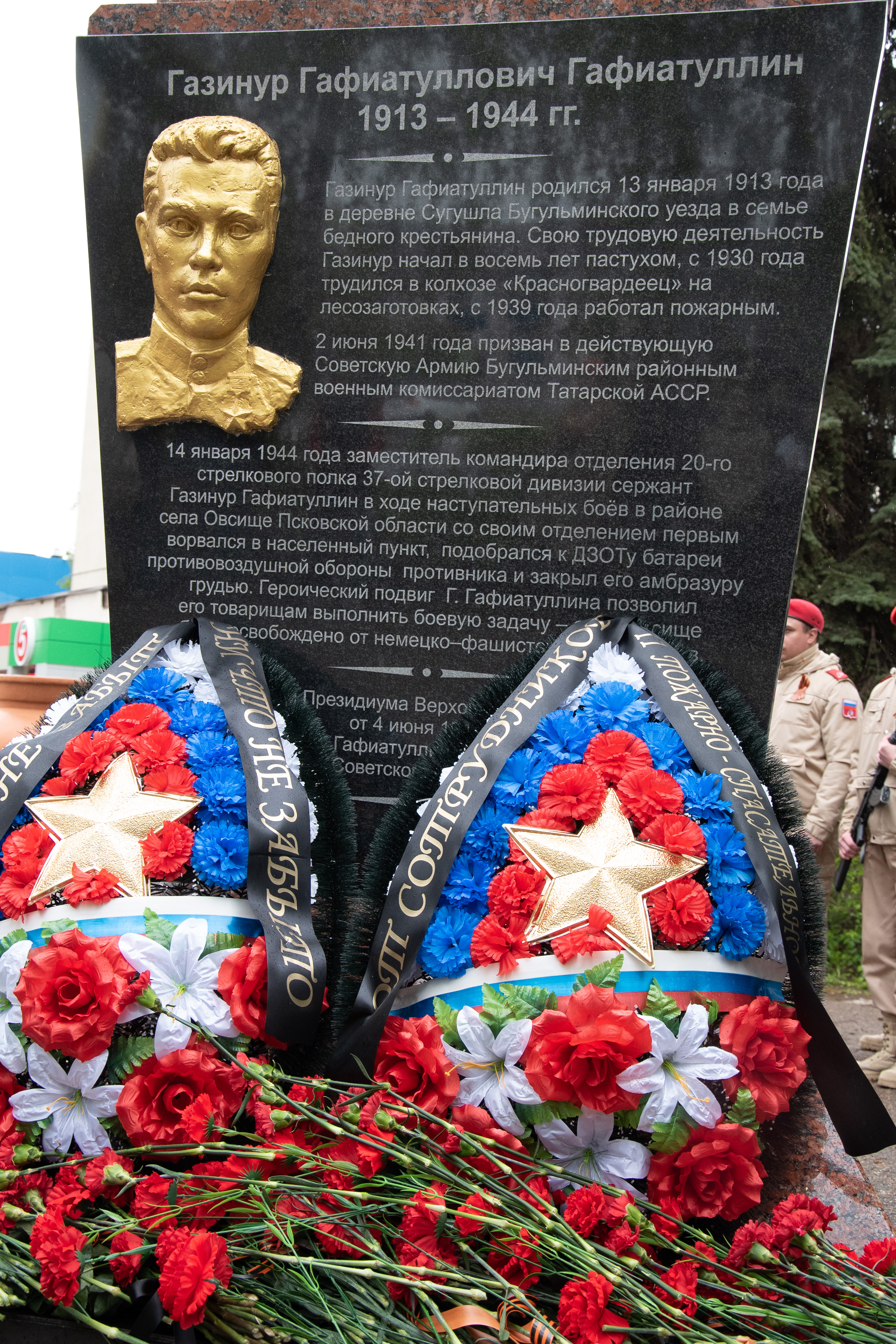 В Бугульме возложили цветы к Стеле Героя Советского Союза Газинура Гафиатуллина
