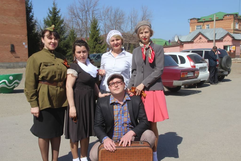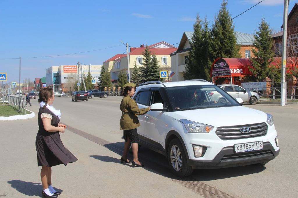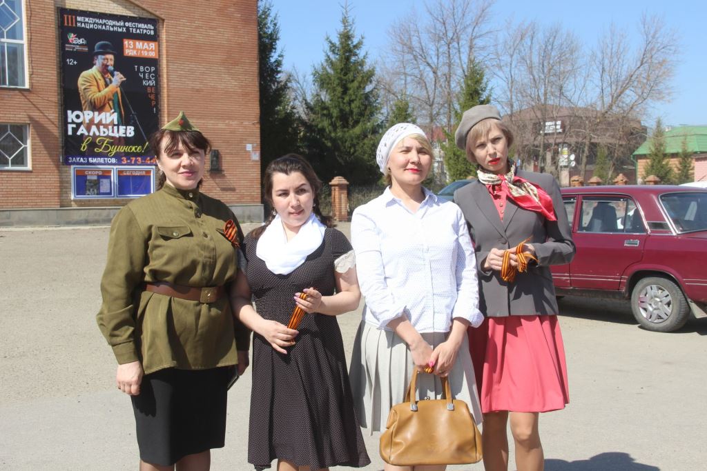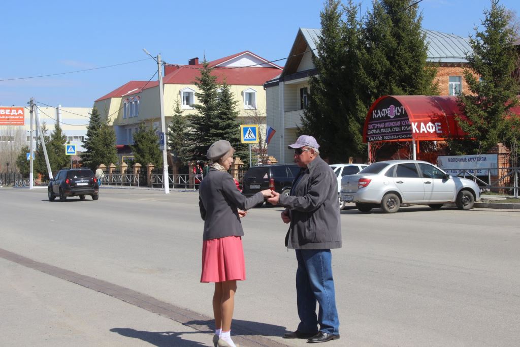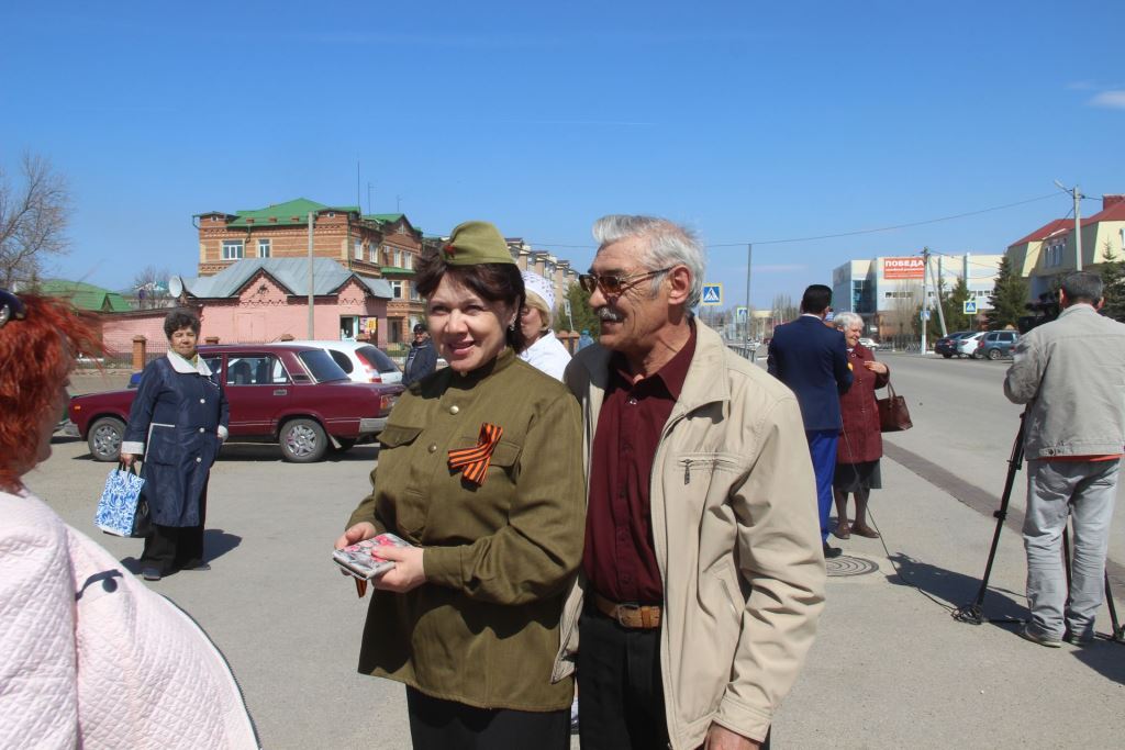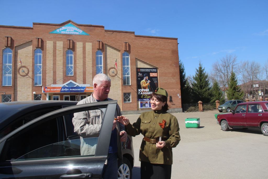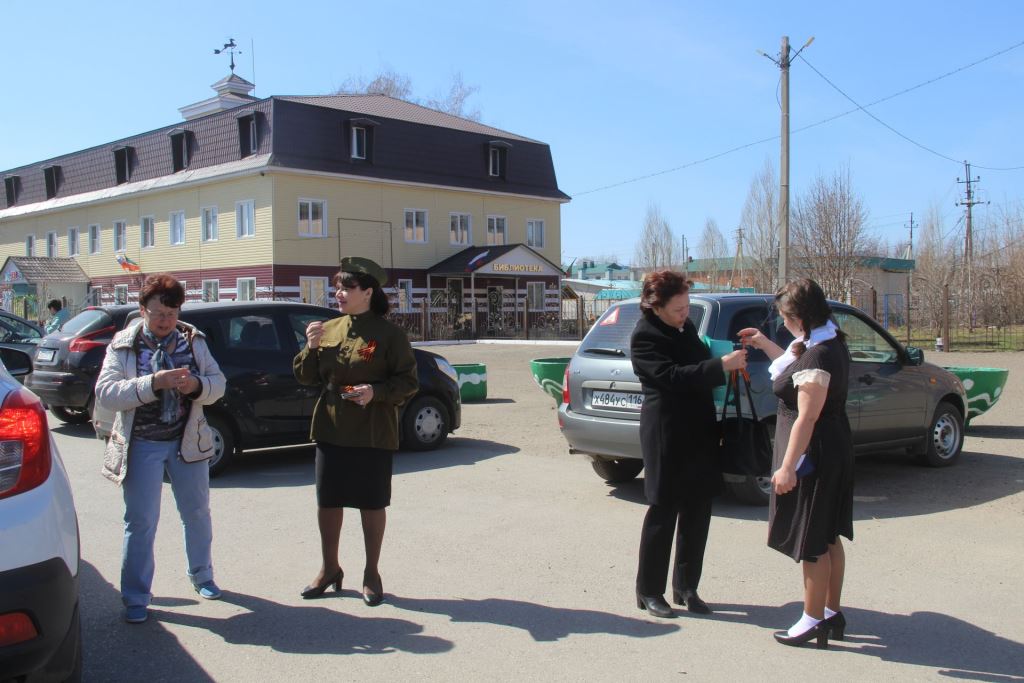 Работники районного управления культуры участвуют в этой акции ежегодно. В этом году организовали своеобразно - георгиевские ленточки проезжающим по улице автомобилистам, пешеходам раздавали в ретро-одежде- как молодежь военной поры.