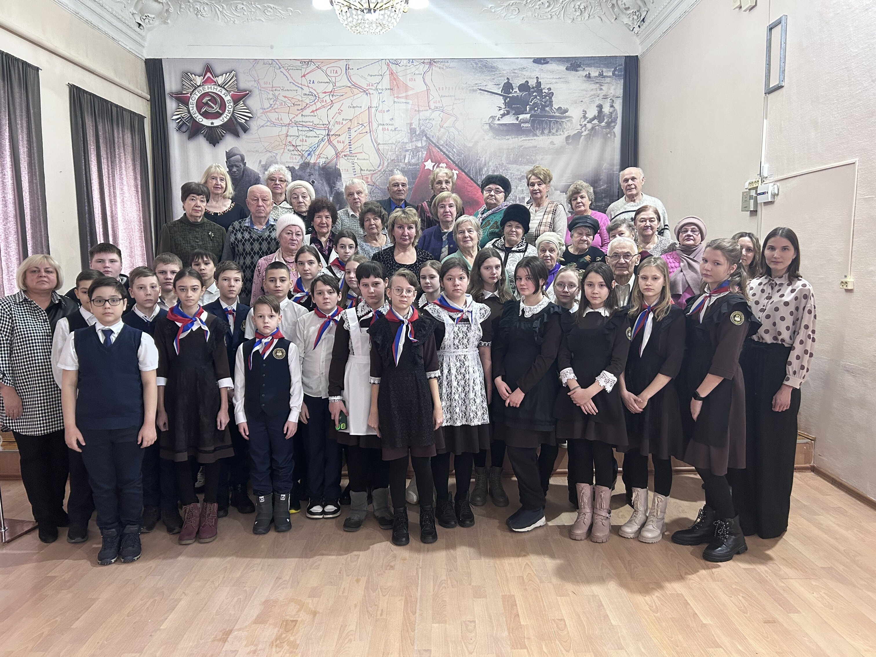 31 января гостями Музейно-выставочного комплекса Чистопольского государственного музея-заповедника стали члены Совета ветеранов (пенсионеров) Чистопольского муниципального района, участники народного хора ветеранов войны и труда, а также учащиеся 6Б класса МБОУ «СОШ №5». Встреча была посвящена Дню полного освобождения Ленинграда от фашистской блокады. Участники мероприятия услышали рассказ о блокадных днях по воспоминаниям наших земляков – защитников и бывших жителей блокадного Ленинграда. В продолжение встречи Тамара Евгеньевна Аблеева прочитала стихотворение собственного сочинения «Красное яблоко», а также прозвучало произведение «Блокадная зима» Владимира Зотова в исполнении ветерана труда Валентины Ильиничны Галлямовой. Председатель Совета ветеранов Ольга Владимировна Добронравова отметила важность подобных встреч, которые способствуют сохранению исторической памяти о Великой Отечественной войне.