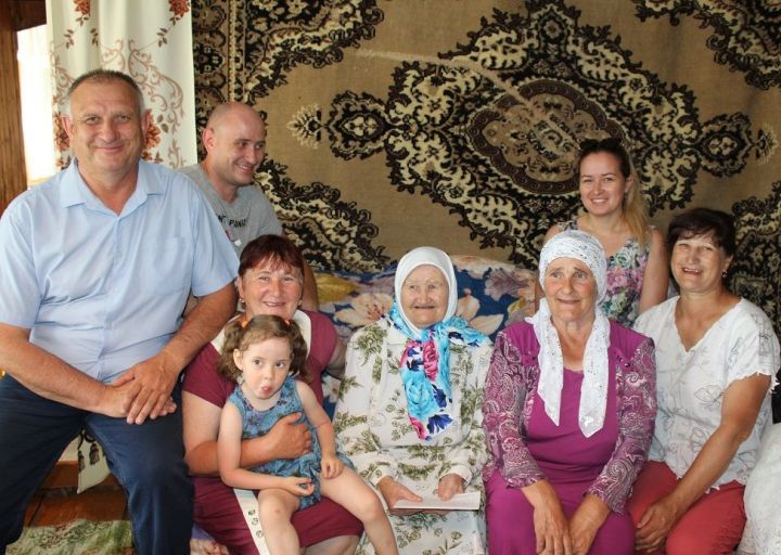 Работала очень много на поле, в заготовке леса. Вместе с мужем Нургаязом вырастили и воспитали 7 детей. Сегодня из них в живых четверо. Внуков у юбилярши 17, а правнуков - 25. В селе рядом с ней живут сын Талгать и сноха Фарида. Сама же юбилярша поживает одна в своём доме.