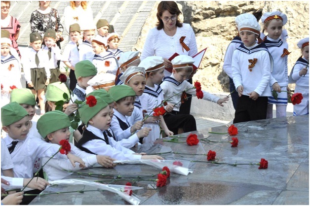 В канун празднования Дня Победы воспитанникам детского сада №30 «Улыбка» выпала честь отстоять Вахту Памяти около Вечного огня. Дети вместе с педагогами и родителями подготовили форму для такого торжественного случая: моряки, танкисты, пограничники пришли почтить память своих земляков к мемориалу Победы.