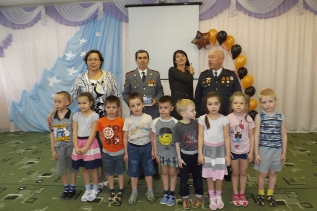 Мероприятие завершилось «Уроком мужества» для детей старших и подготовительных групп. Ветераны Кашапов Г.Н. и Красильников М.М. рассказывали детям о героях «былых времен», о войне и о Победе. Гости вместе с детьми пели песни военных лет, рассказывали стихи.
