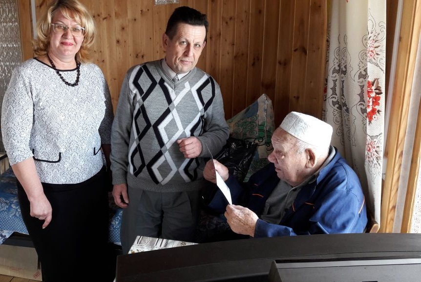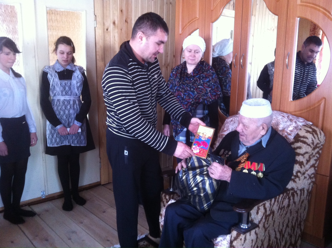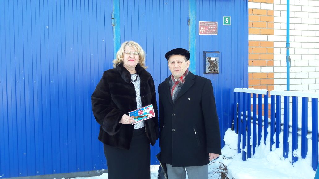 В предверии Дня Защитника Отечества от имени Главы Тетюшского района Рамиса Хатыповича Сафиуллова начальник Отдела образования Красулина Т.В. и директор Бакрчинской средней общеобразовательной школы Салимзянов Ф.Н. поздравили ветерана Великой Отечественной войны Тагирова Мубарякзяна Фатыховича. Вручили поздравительную открытку и передали самые теплые пожелания от руководителя района.