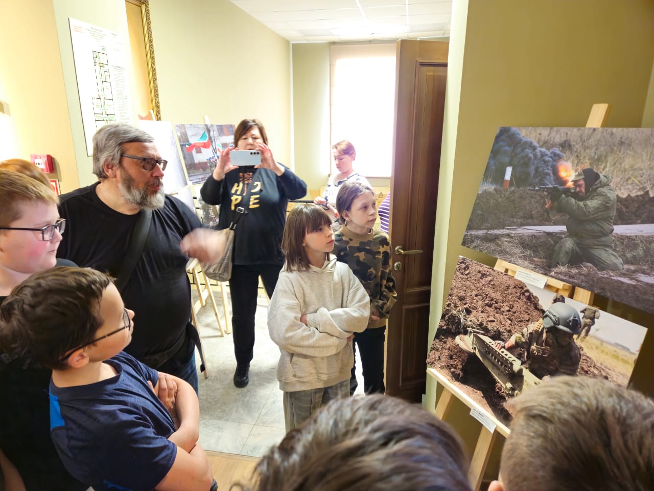 В музее Лаишевского края имени Г. Р. Державина прошло открытие выставки "СВО глазами очевидца". Фотограф Захаров Михаил Юрьевич рассказал ученикам МБОУ "Гимназия №1 г. Лаишево" 5Б класса о своих впечатлениях с мест СВО, о жизни людей, затронутых СВО. Встреча была очень живая. Дети активно принимали участие, задавая вопросы и также делились своими впечатлениями.