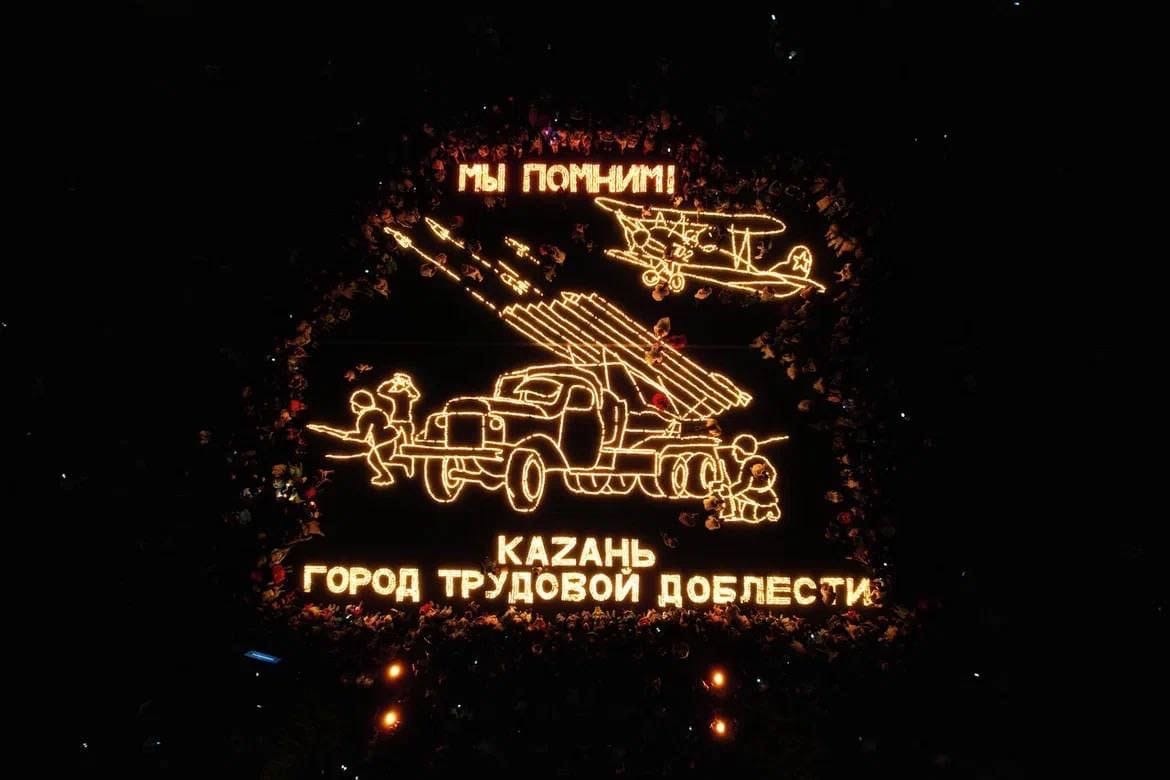 В ночь с 21-го на 22-е июня в парке Победы в Казани выложили из свечей изображения советских солдат, гвардейского миномета «Катюша» и бомбардировщика «По-2», производившегося в городе в годы войны.