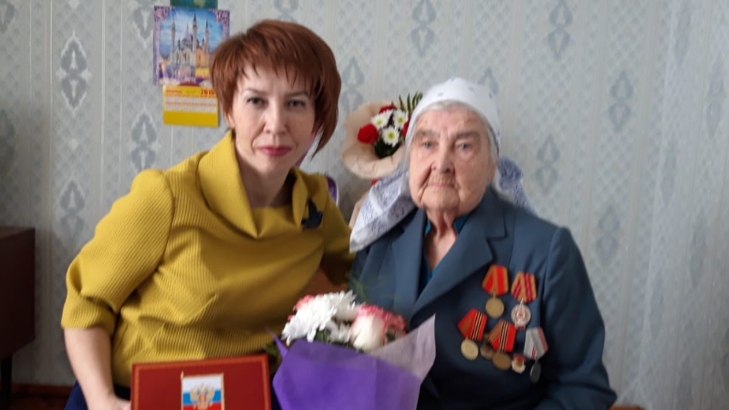 Поздравить юбиляра с днем рождения, пожелать здоровья и поблагодарить от имени Президента РФ Владимира Путина, от имени главы района Алмаза Ахметшина за самоотверженный труд в годы войны приехала заместитель руководителя исполнительного комитета по социальным вопросам Эльмира Шагаева.