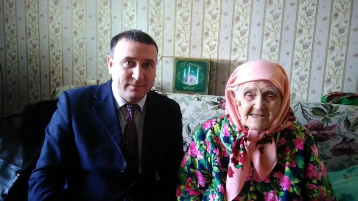 Юбиляршу навестил заместитель руководителя исполнительного комитета района Фанис Рахматуллин. Фанис Анасович вручил имениннице подарок и поздравление президента России Владимира Путина, главы района Алмаза Ахметшина.