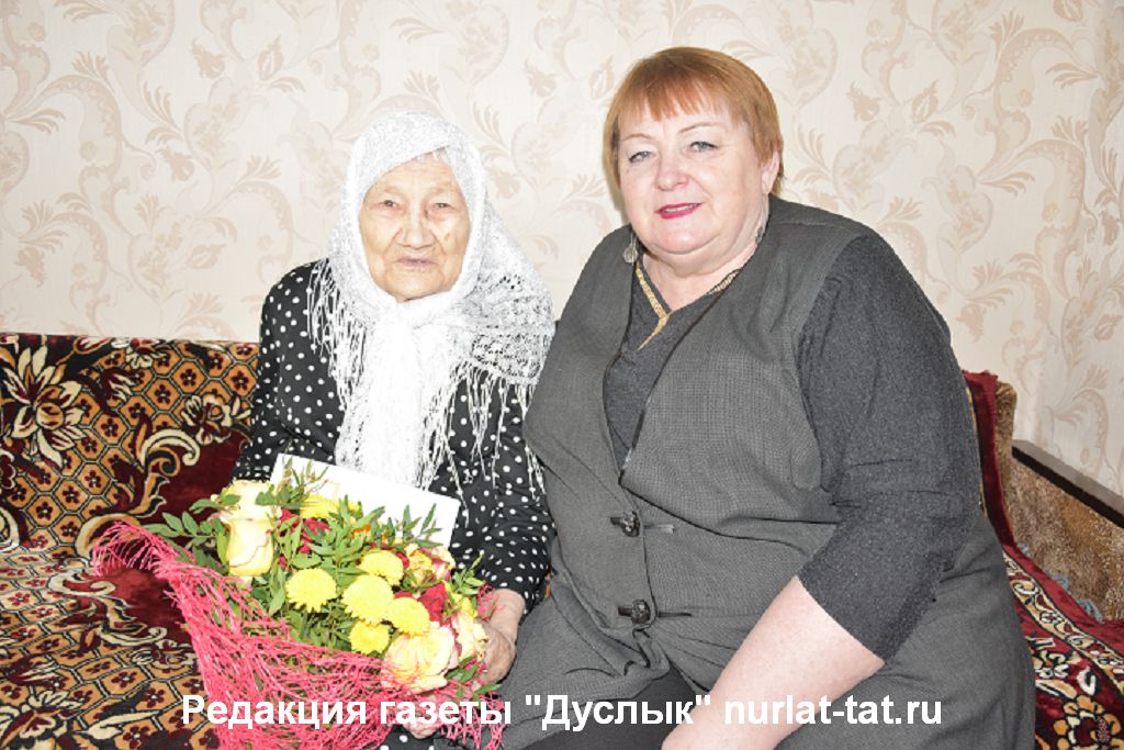 С этой приятной миссией в гостях у юбилярши побывала заместитель главы района Флюра Ногуманова. Она передала имениннице добрые пожелания и подарки от имени главы района Равиля Кузюрова, а также зачитала персональное поздравление Президента РФ Владимира Путина.