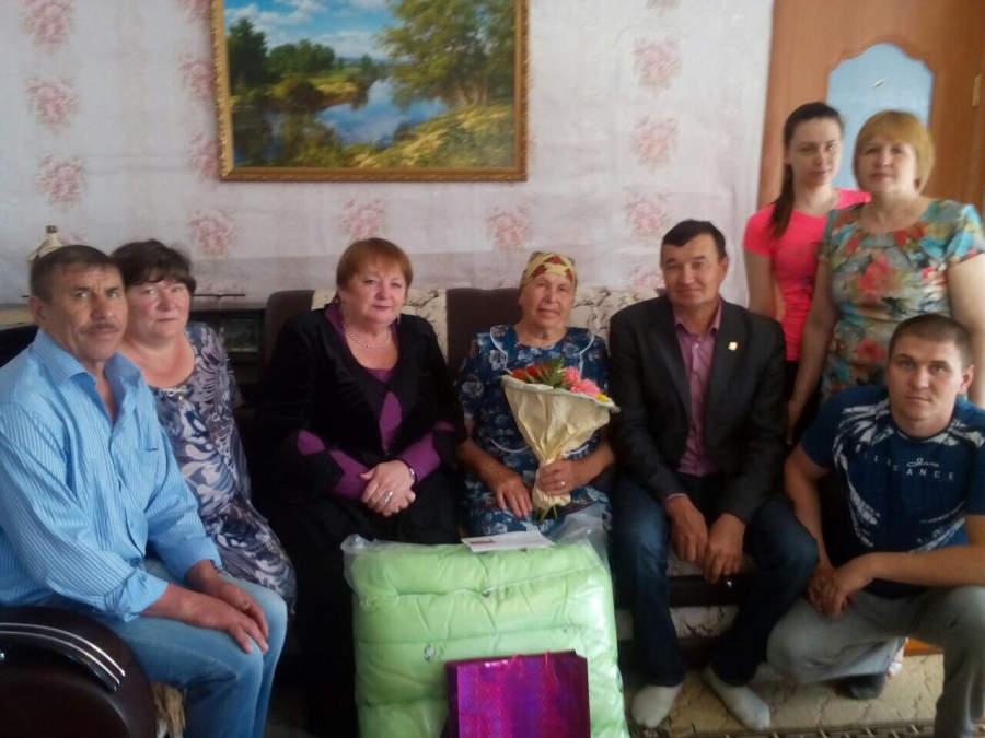 Веру Егоровну Ильдюшину с юбилеем поздравила и вручила подарки от имени главы района Равиля Кузюрова заместитель главы района Флюра Ногуманова. Здесь же юбилярше вручили и поздравительную открытку от имени Президента РФ Владимира Путина.