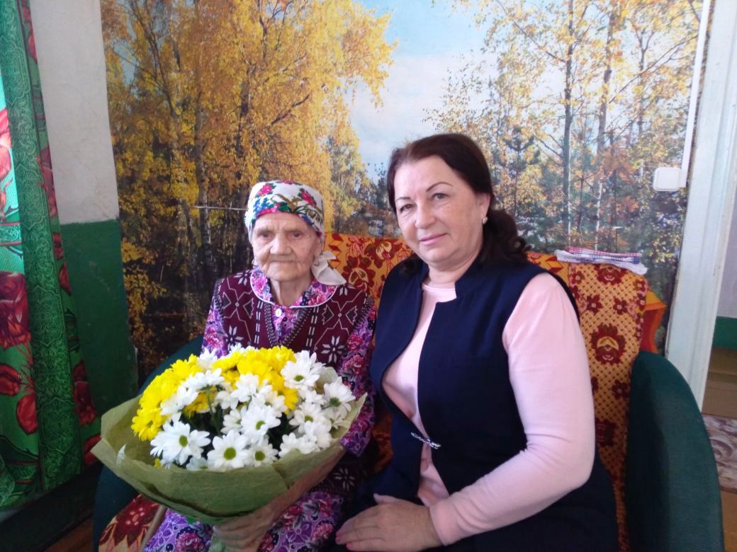 Анну Николаевну с юбилеем поздравила и вручила подарки от имени исполняющего обязанности руководителя исполкома района Алмаза Ахметшина заместитель руководителя исполкома района по социально-культурным вопросам Альфия Галаутдинова. Здесь же юбилярше вручили и поздравительную открытку от имени Президента РФ Владимира Путина.