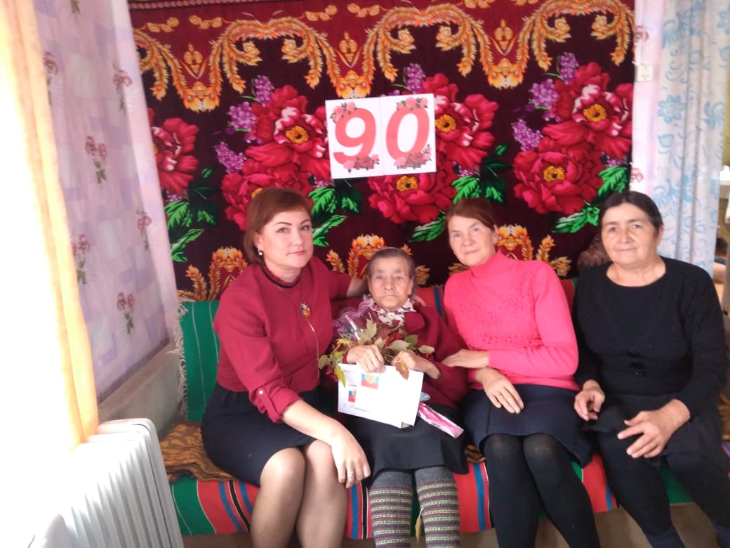 Поздравила ветерана педагогического труда от имени главы района Алмаза Ахметшина за самоотверженный труд в годы войны начальник отдела социальной защиты района Оксана Терентьева.