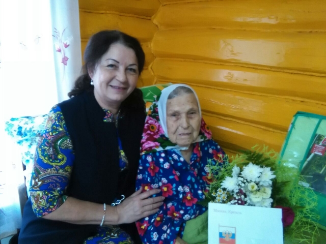 Поздравить юбиляршу с днём рождения, пожелать здоровья и поблагодарить от имени Президента РФ Владимира Путина, главы района Равиля Кузюрова за самоотверженный труд в годы войны в колхозе приехали заместитель руководителя исполкома района Альфия Галаутдинова, глава поселения и дети.