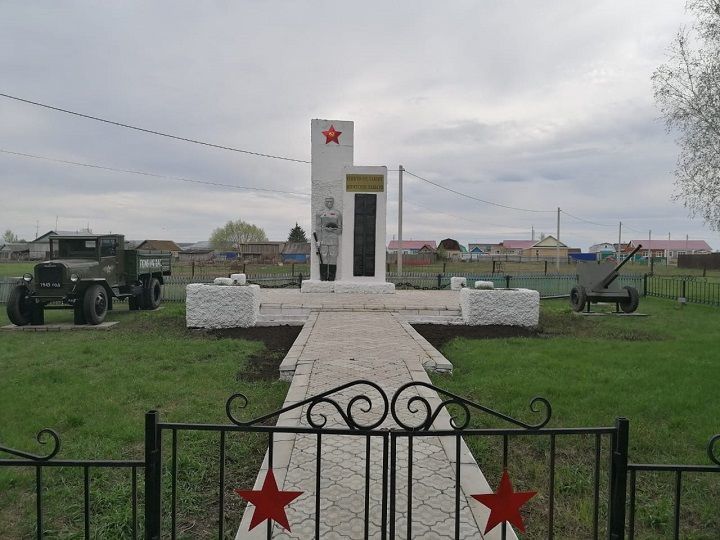 В Ленино возле обелиска павшим землякам установлены точные копии 45 мм артиллерийской пушки и грузовик ЗИС-5 времен войны.