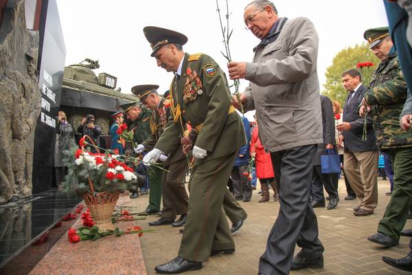 Затем участники церемонии возложили венок и цветы к памятнику. Торжественное открытие мемориала завершилось прохождением роты почетного караула.
