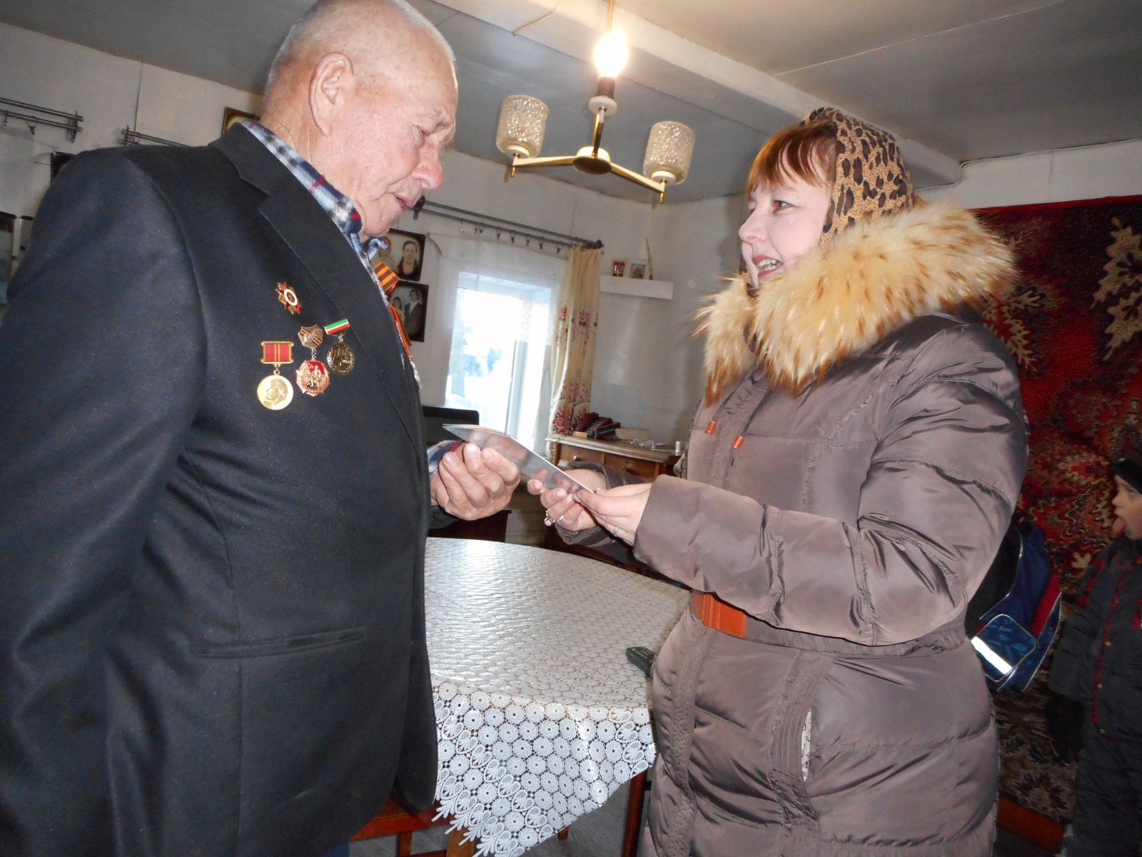 С 90-летним юбилеем пришли поздравить ветерана Великой Отечественной войны Вениамина Петрова юные читатели Кировской библиотеки Верхнеуслонского района вместе с заведующей Ириной Веселовой. Они обратилась к ветерану со словами полными уважения и благодарности: