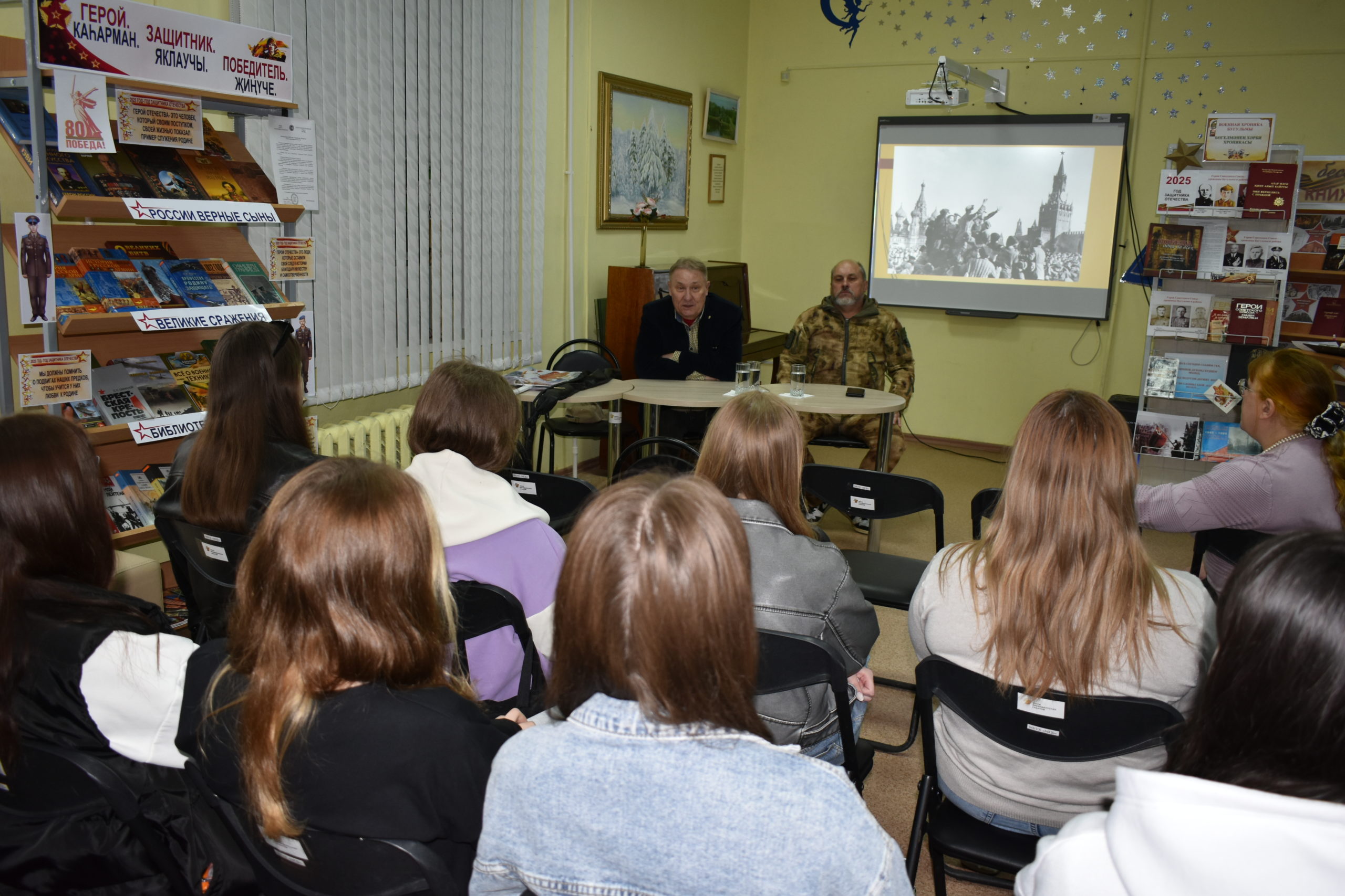 В рамках празднования 80-летия Победы в центральной библиотеке провели вечер исторических портретов «Сквозь года звенит Победа». Студенты медицинского колледжа подробнее узнали о величайших маршалах Великой Отечественной войны Г. К. Жукове, К. К. Рокоссовском и их знаменитых подвигах.