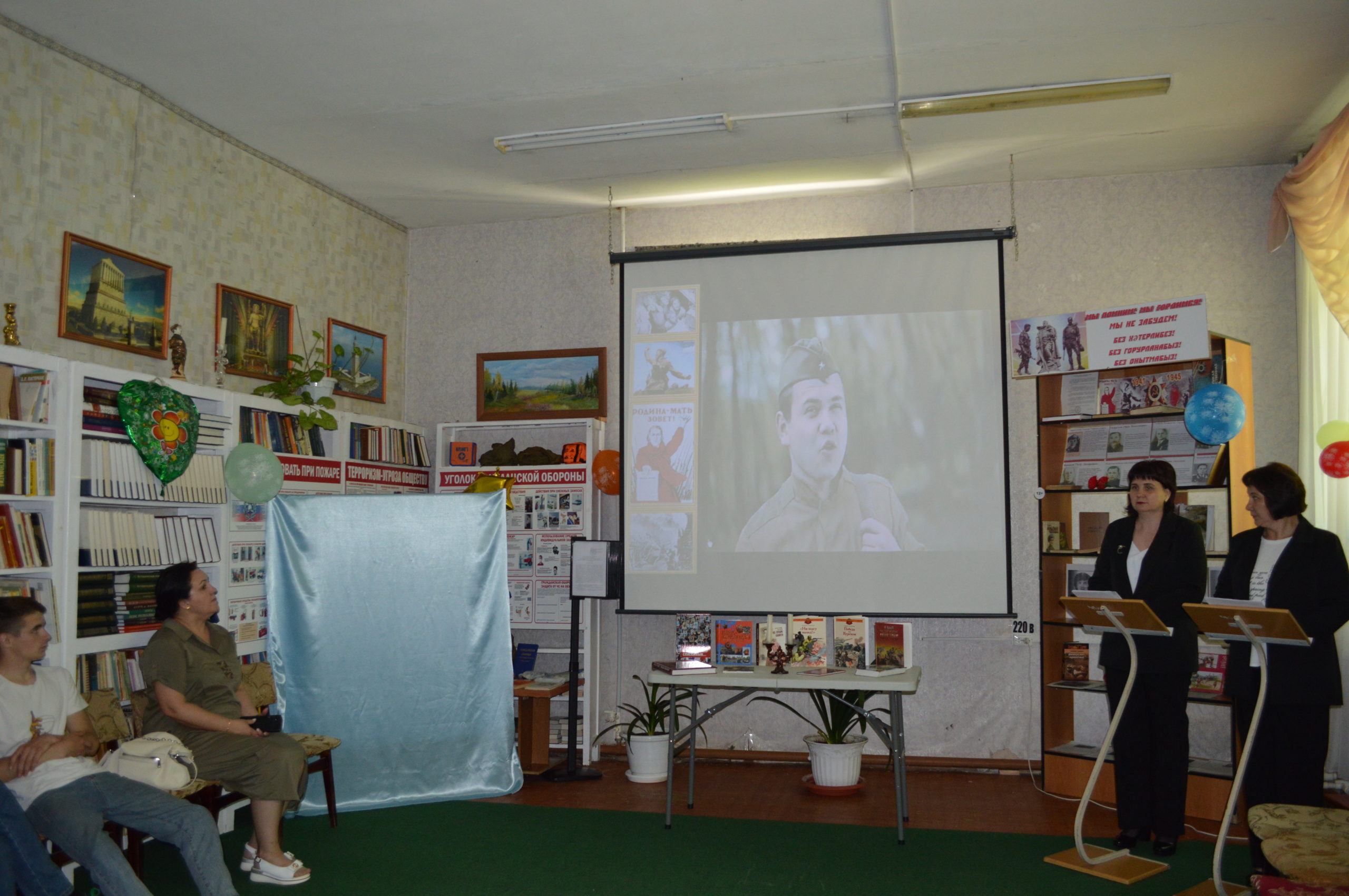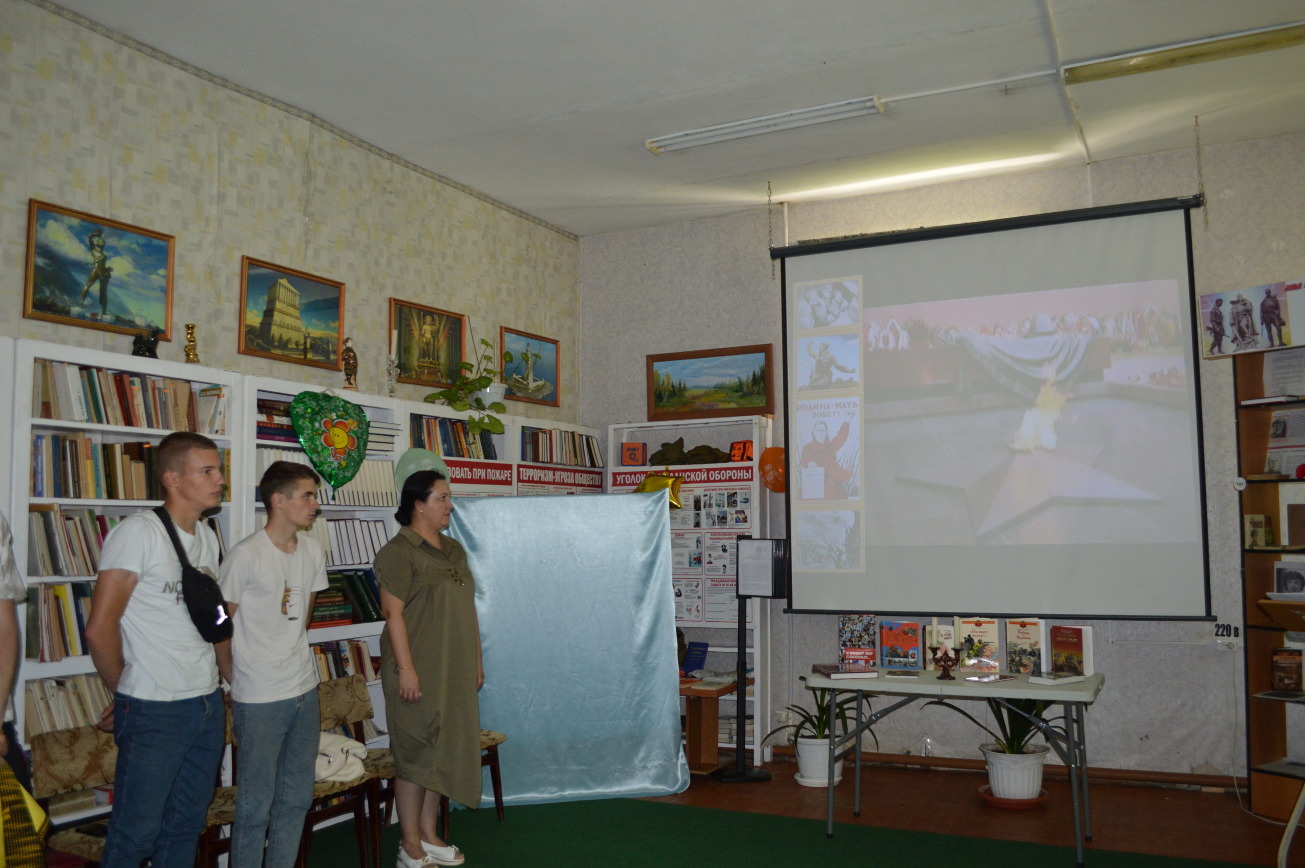 22 июня 1941 года — одна из самых печальных дат в истории России — День памяти и скорби — день начала Великой Отечественной войны. Участники мероприятия узнали о самых крупных сражениях в ходе войны: битве под Москвой, Сталинградской и Курской битвах, о партизанских отрядах, о солдатах и офицерах, погибших в боях за нашу Родину. Библиотекарь рассказала участникам мероприятия о том, сколько горя принесла война нашему народу, о тяжести испытаний, выпавших в те годы на тружеников тыла, на детские плечи. Читатели узнали о тяжёлых трудовых буднях подростков в тылу, об их отваге в партизанских отрядах и на фронте. Затем состоялось прочтение стихов о войне, были показаны видеофрагменты из документальных фильмов о войне.