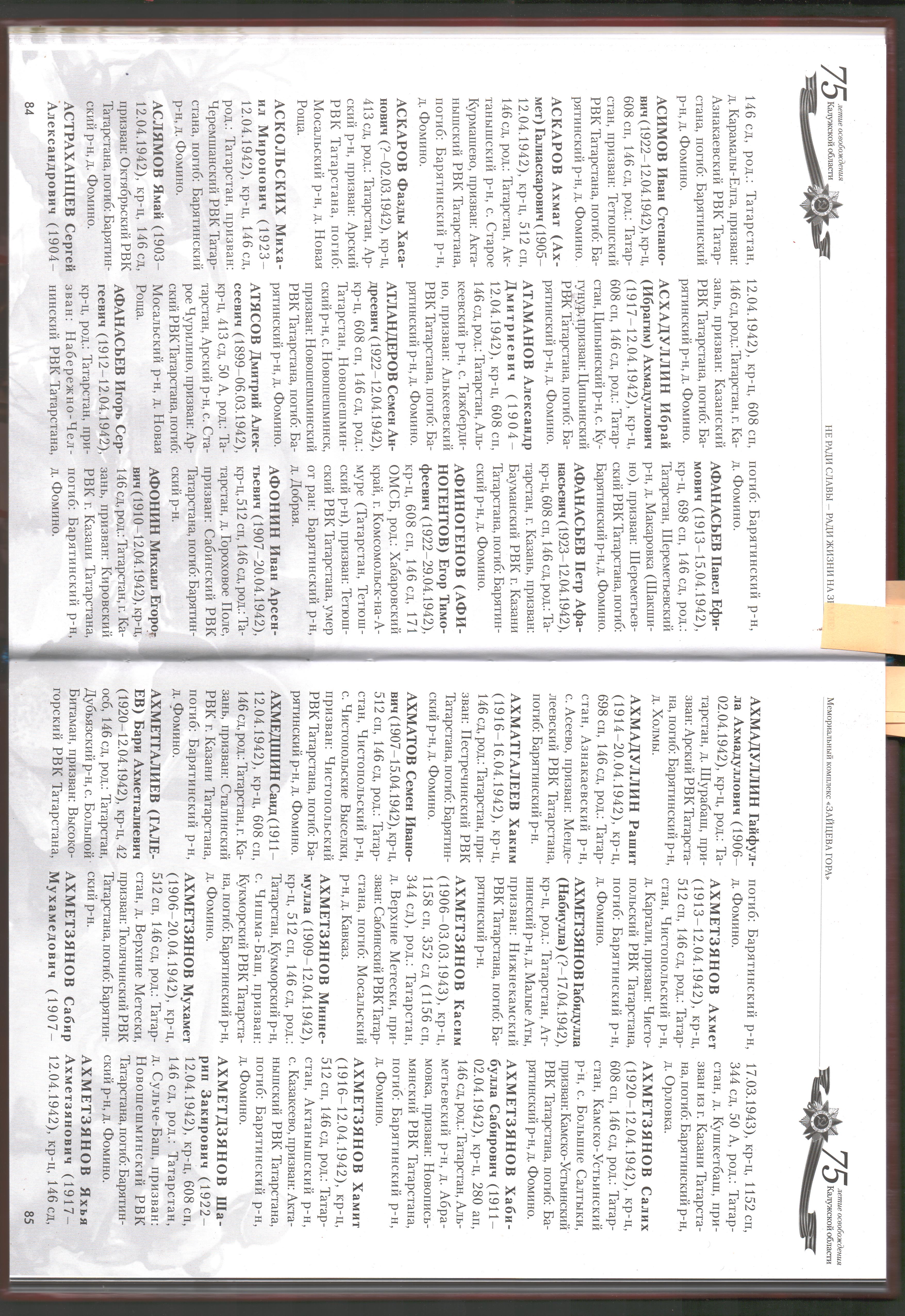 В продолжение рубрики "Вернувшиеся имена героев" представляем списки погибших солдат в годы Великой Отечественной войны, захороненных в д. Зайцева гора Барятинского района Калужской области, среди которых есть наши земляки. Возможно, кто-то найдёт имена своих близких.