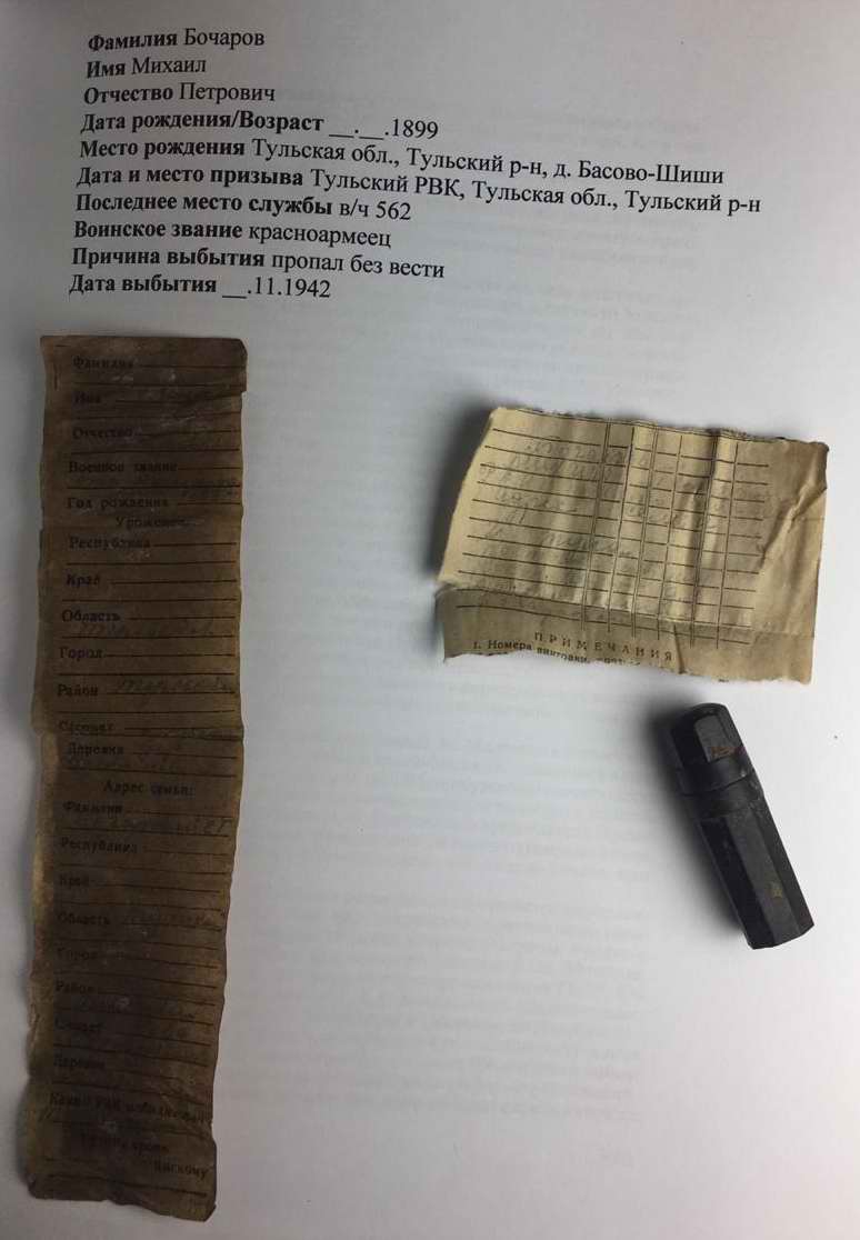 30 апреля 2019 года сводным поисковым отрядом Некоммерческого партнерства «Снежный десант» (г.Казань) в районе д.Мясной Бор Новгородского района Новгородской области были обнаружены непогребенные останки советского воина и при них найден знак «Почетному железнодорожнику» № 3950. Специалистами ВИПЦ «Отечество» срочно были отправлены запросы в Центральный музей железнодорожного транспорта Российской Федерации, Архив Министерства путей сообщения, в ОАО «РЖД». Благодаря профессиональной работе сотрудников отдела соревнований и наград Департамента управления персоналом ОАО РЖД (руководитель департамента Саратов Сергей Юрьевич) в течение двух часов имя награжденного этим знаком было установлено! Им оказался КУЗИН Иван Петрович, курсант Московской военной школы железнодорожных войск. Награжден 8 июня 1937 года. В 1937 году курсанты работали на Байкало-Амурской магистрали и за успешное продвижение поездов по Амурской и Дальневосточной железной дороге были награждены знаком профессионального отличия «Почетному железнодорожнику». Работница отдела наград рассказала, что повезло с поиском - приказов в архиве много, пришлось бы все листать, что потребовало бы времени, а тут только открыли - и нужный номер! Других данных о награжденном в приказе нет. Поиск будет продолжен в других документах железнодорожного ведомства. Поисковый отряд «Нефтехимик» из Нижнекамска работает в Городищенском районе Волгоградской области. Ими на 2 мая подняты останки 28 советских солдат, найдена фляжка, подписанная "Качкин" и один медальон. По сохранившимся замечательно двум запискам медальона установлена личность воина: БОЧАРОВ Михаил Петрович, 1899 г.р., уроженец д.Басово-Шиши Ново-Басовского сельского совета (Косогорское почтовое отделение) Тульской области. Жена Бочарова Екатерина Гавриловна проживала по этому же адресу. 2 мая штаб Новгородской поисковой экспедиции «Долина» сообщил, что в ходе продолжающихся второй год поисковых работ на месте бывшего лагеря советских военнопленных у д.Муравьево Старорусского района Новгородской области обнаружен смертный медальон нашего земляка: ВАЛИАХМАТОВ Нуриахмат, Тат. АССР, ст. Ютаза, Ютазинский район, Кзыляровский с/совет, колхоз имени Ленина, сообщить Валиахматовой Шамсибадар. В донесении Ютазинского РВК от 1946 года и в Книге Памяти Республики Татарстан он учтен пропавшим без вести в 1943 году. К поиску подключились журналисты, поисковики Бавлинского района. Информация оперативно была озвучена в эфире радио «Болгар», в передаче «Манзара» телекомпании ТНВ. Вскоре получили радостную весть из Кзылярского сельского поселения Бавлинского района: дети-двойняшки воина – дочь Зайтуна и сын Адип 1942 года рождения проживают в селе Кзыл-Яр, там же, откуда отец ушел на войну. Из 8 его детей ныне живы только двое младших. Много внуков, правнуков. Валиахметовы передают большую благодарность поисковикам за их работу! В Новгородской области поисковым отрядом «Ориент» Аксубаевского района совместно с башкирскими коллегами также найдены несколько подписанных личных вещей солдат, «Снежным десантом истфака КГУ – гимназии 122» г.Казани - пока непрочитанный, требующий экспертизы, медальон. Надеемся на установление личности и этих воинов