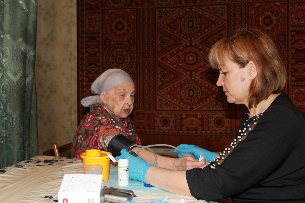 07.05.2016 г. В преддверии Дня Победы поздравили своего ветерана представители Альметьевского Центра медпрофилактики. И.о. главного врача Анвар Абдулов вручил Зинаиде Михайловне Гаязовой, посвятившей почти 40 добросовестных лет отечественной медицине, поздравительные телеграммы от имени президента РТ Рустама Минниханова и Главы АМР Айрата Хайруллина, гостинцы и теплые слова-пожелания от имени руководства Управления здравоохранения.