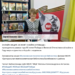 В фойе центральной детской библиотеки и социальных сетях пользователям представлено видео громких чтений произведения Сергея Алексеева «Дом». Видео подготовлено в рамках Online акции «80 книг о войне и победе», посвященной 80-летию Победы в Великой Отечественной войне и Году мира и единства в борьбе с нацизмом.
