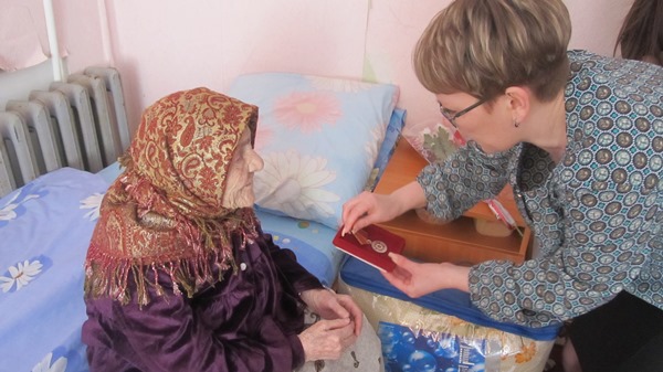 В преддверии Дня победы Центр «Форпост» совместно с Подростковым клубом «Ровесник» вручили медаль в честь 70-годовщины Победы над фашизмом ветерану Великой Отечественной войны Хуснутдиновой Заде Муртазиновне.
