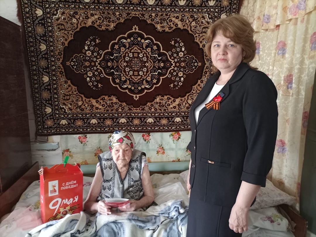 Екатерина авыл җирлеге башлыгы тыл хезмәтчәннәренә һәм Бөек Ватан сугышында катнашучының тол хатынына азык-төлек пакетлары тапшырды.