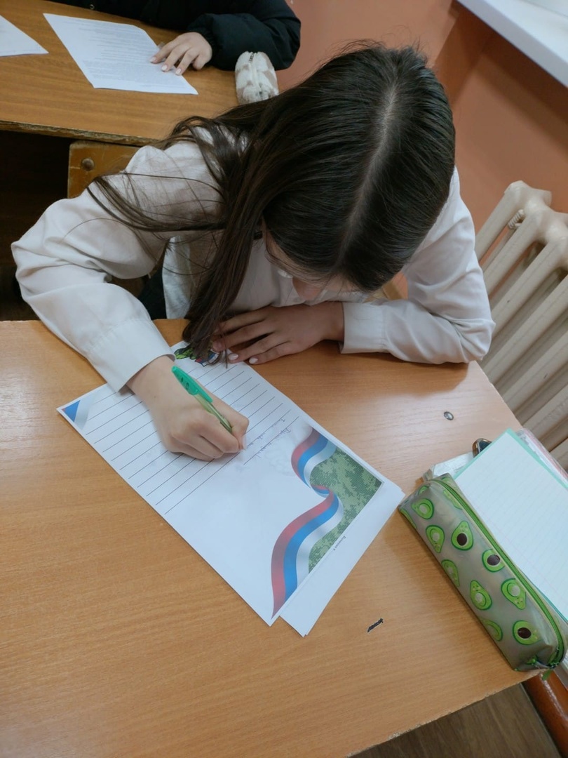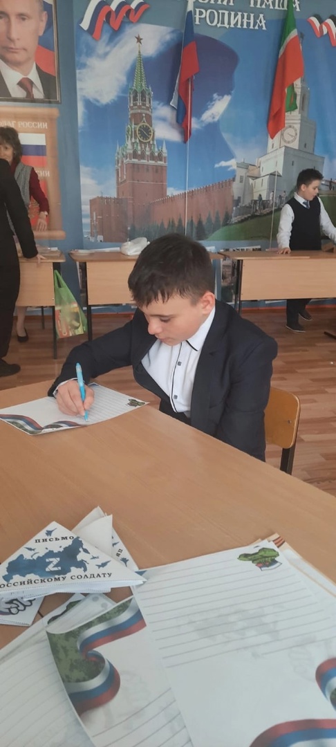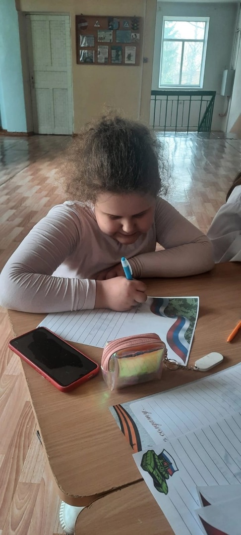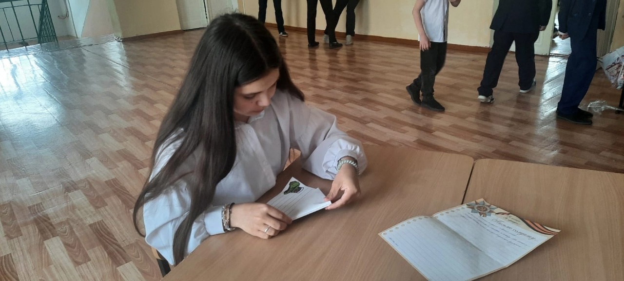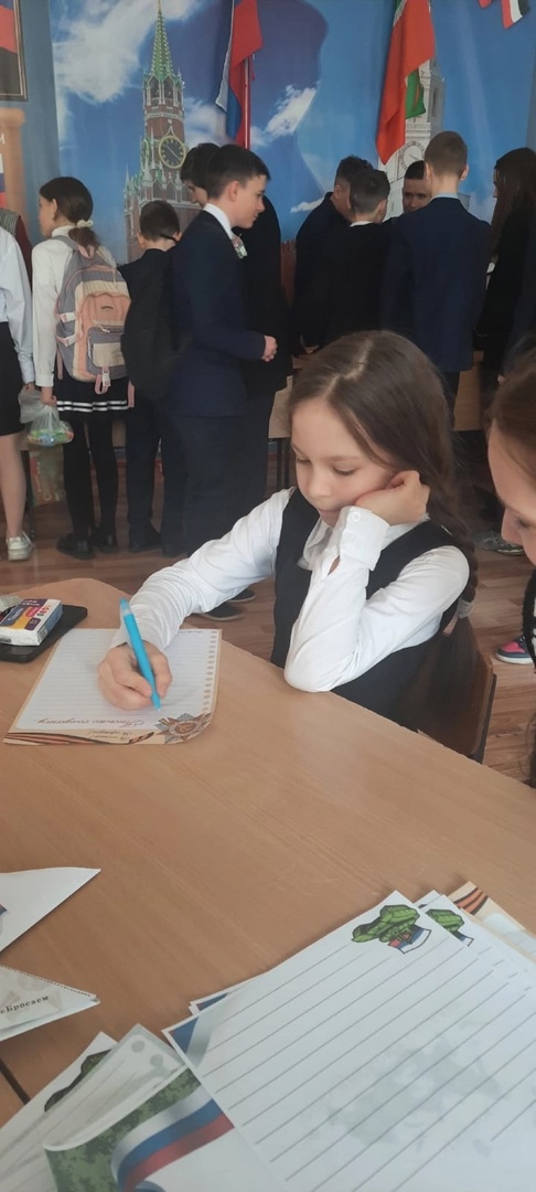 Учащиеся школы № 11 подготовили для российских бойцов, которые находятся в зоне проведения специальной военной операции, письма, где поздравили солдат с наступающим Днём Победы.