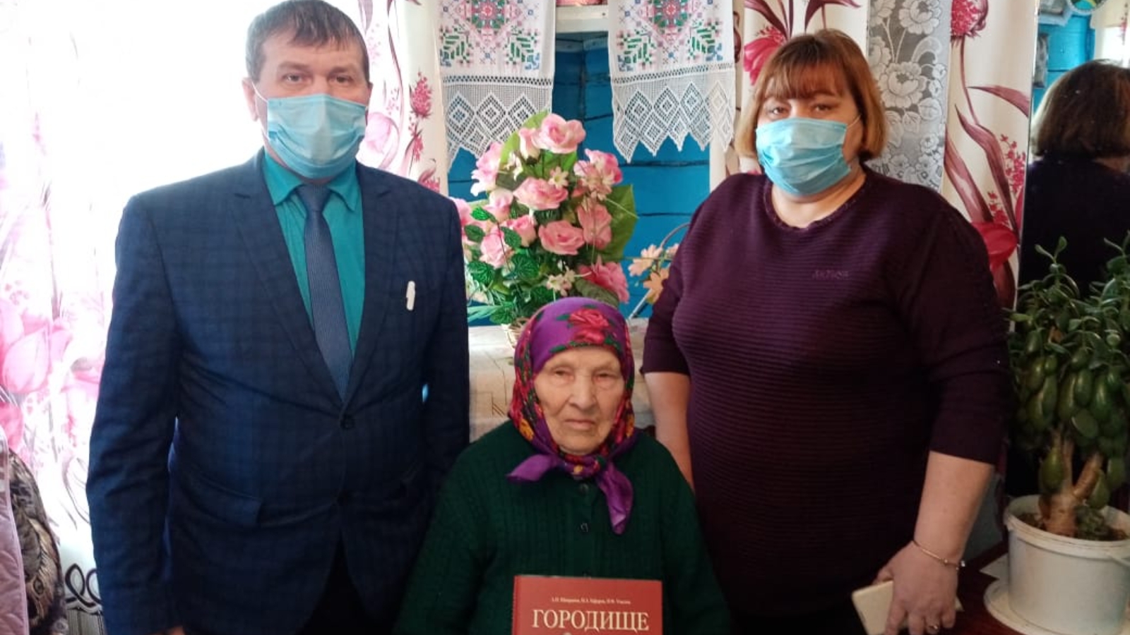 В рамках проекта "У войны не женское лицо" глава Городищенского сельского поселения Усмендеев Н.А. и художественный руководитель СДК Портнова К.П. посетили труженицу тыла Нягусеву М.К и вручили ей книгу "Городище" посвященную 75-летию Победы в Великой Отечественной войне 1941-1945 гг.