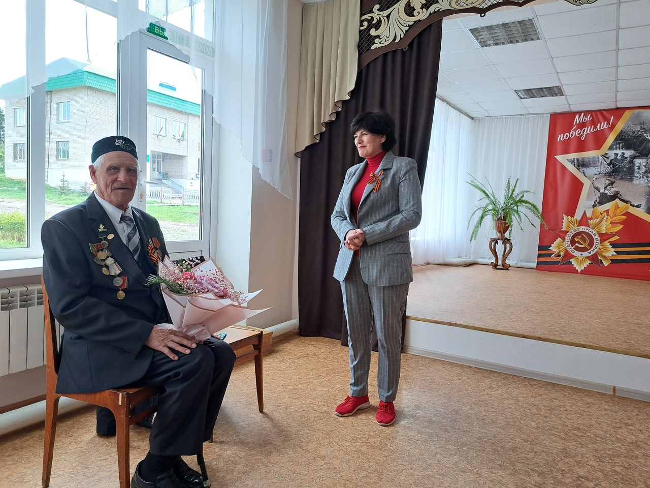 Директор школы Низамиева С.Н. выступила с поздравительной речью и выразила благодарность участнику ВОВ за боевой и трудовой подвиг, за мужество и героизм, проявленные в годы войны.
