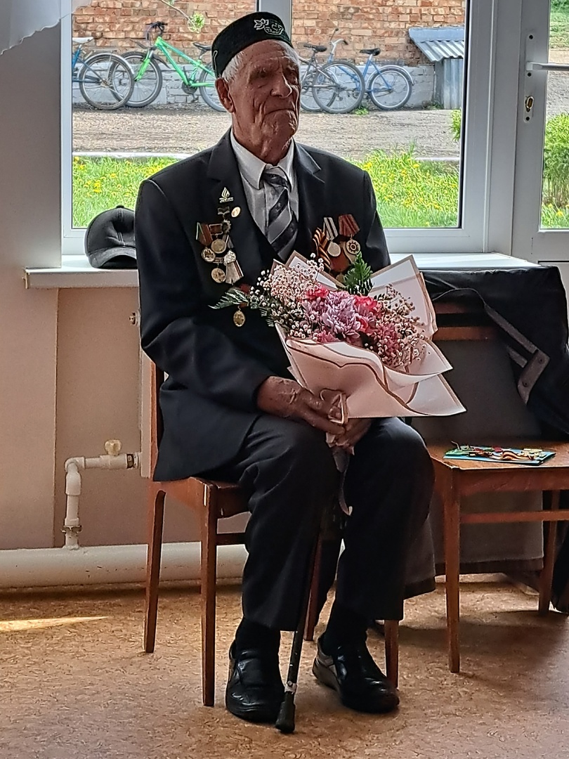 В преддверии приближающегося 78-летия Победы в Кудашевской ООШ состоялась встреча коллектива с ветераном ВОВ родного села Мияссаровым Гилемхан Мияссаровичем.
