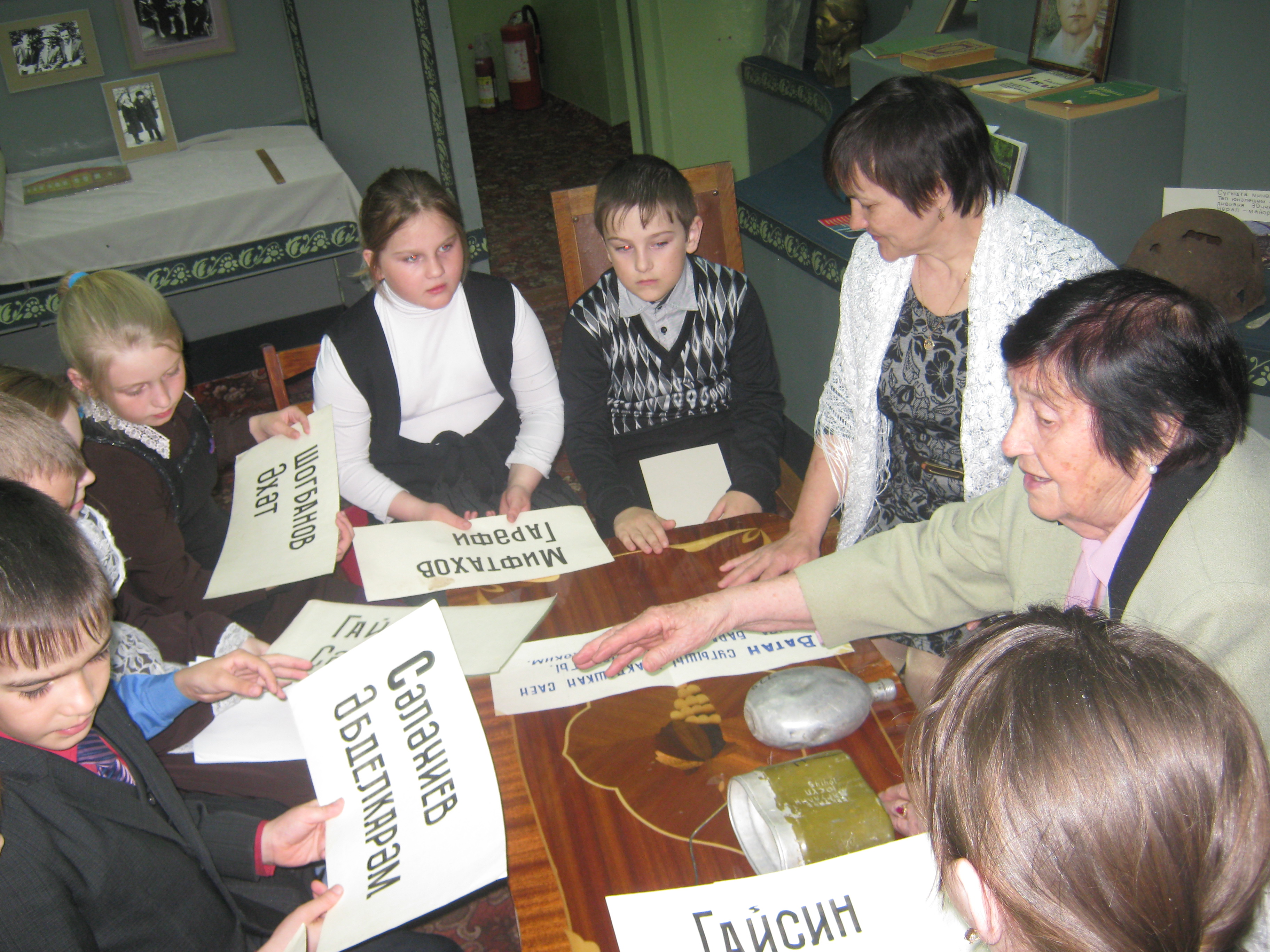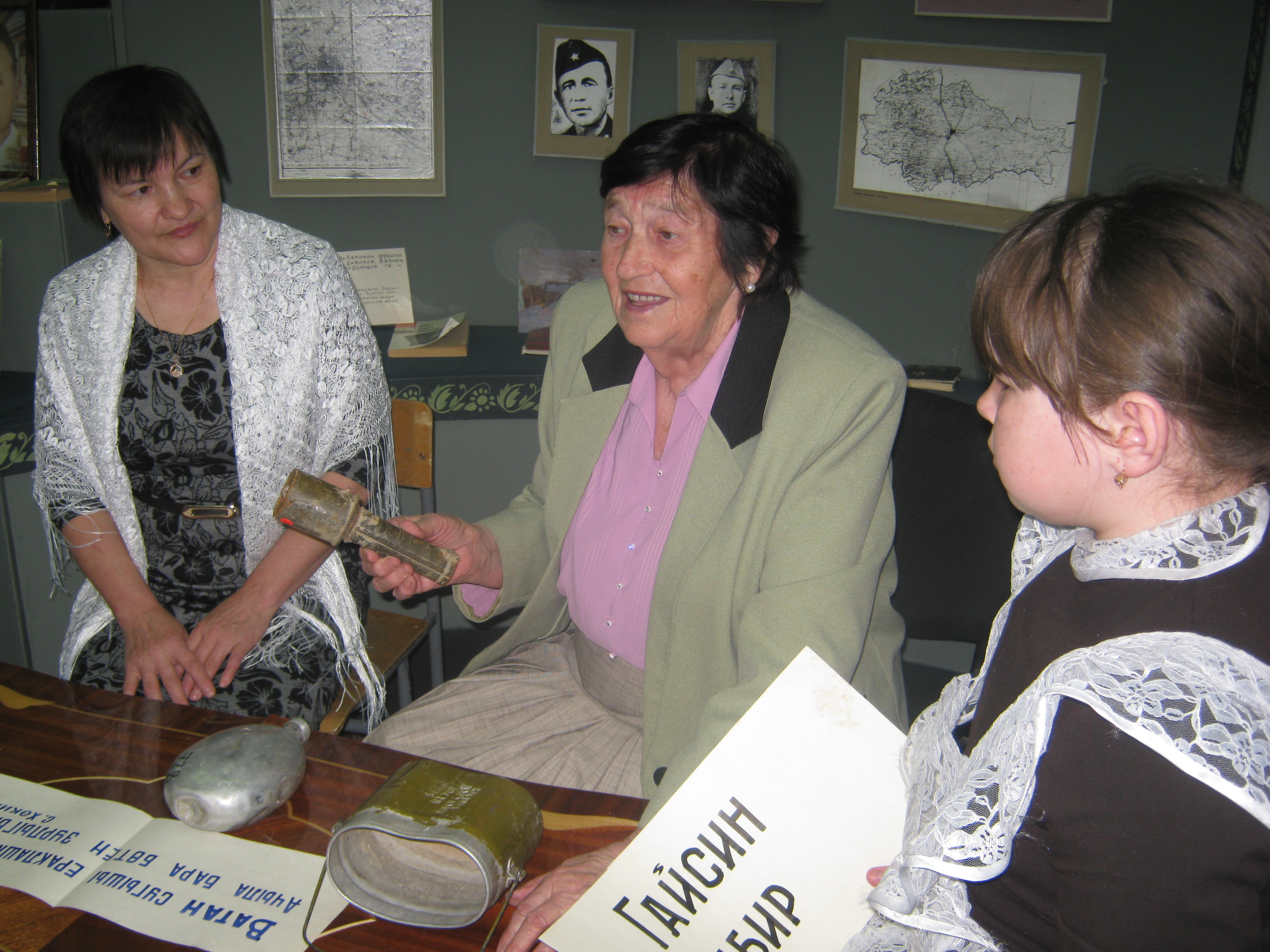 В рамках акции «Музейная весна Татарстана-2015» в музее Сибгата Хакима, расположенного в селе Кулле Кими Атнинского райна, прошла встреча за круглым столом “Сугыш чоры балалары”. Руководитель музея Шамсиева Луиза Аглиевна на своем примере рассказала детям о трудностях военных и послевоенных лет. Участники встречи с увлечением слушали рассказы и задавали ей свои вопросы.