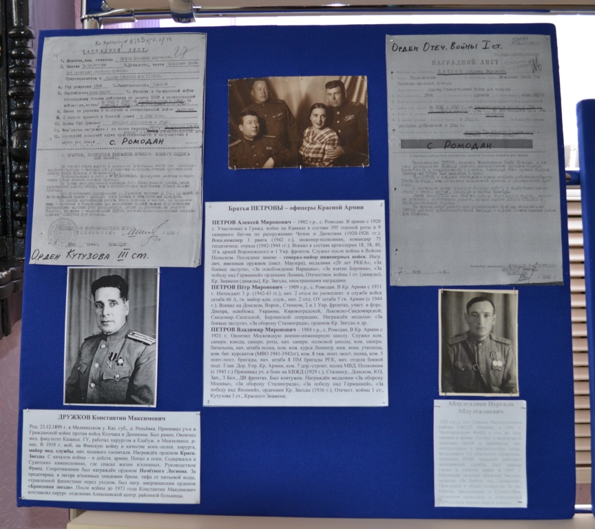 20 февраля в Музее родного края открылась новая выставка под названием "Честь и отвага", приуроченная ко Дню защитника Отечества. На на ней представлены фотографии и документы наших земляков-офицеров, которые ярко проявили свой героизм при защите нашей Родины в годы Великой Отечественной войны.