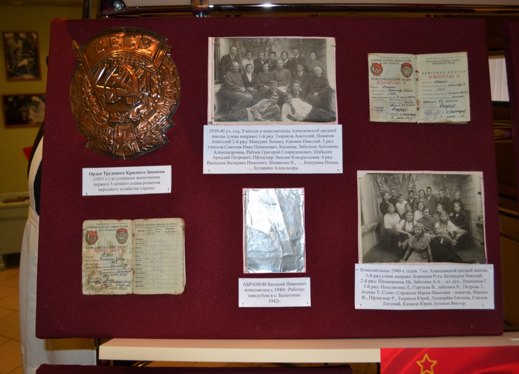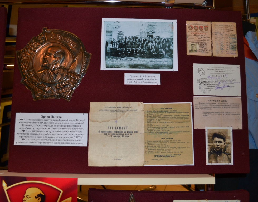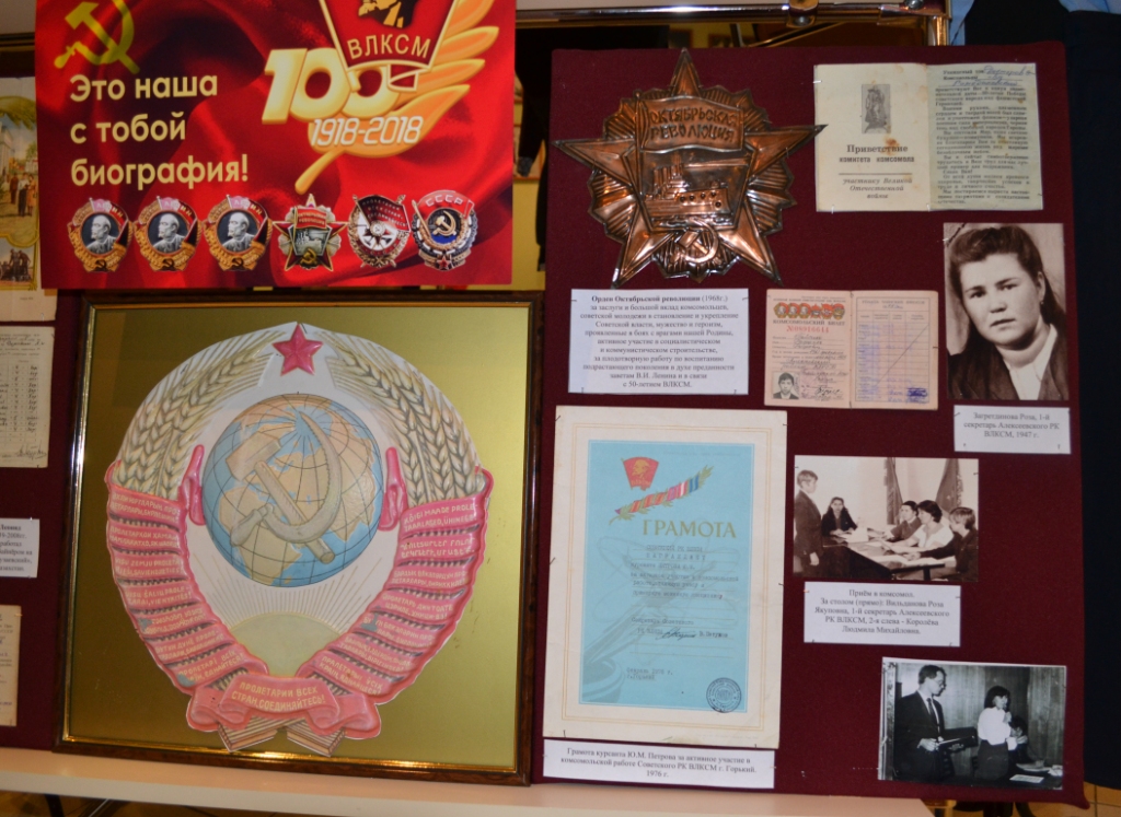 12 октября 2018 г. в Музее родного края им. В.И. Абрамова завершилась подготовка выставки к 100-летию образования ВЛКСМ "Это наша с тобой биография!". На ней представлены наибоее интересные экспонаты из фондов музея, связанные с историей комсомольского движения разных лет в Алексеевском районе. Излишне говорить, что комсомольцы в годы Великой Отечественной войны проявляли чудеса самопожертвования и героизма, среди которых было и немало алексеевцев. Неслучайно один из шести орденов комсомольской организации вручен в 1945 г. с формулировкой "... за выдающиеся заслуги перед Родиной в годы Великой Отечественной войны Советского Союза против гитлеровской Германии, за большую работу по воспитанию советской молодёжи в духе преданности социалистическому Отечеству".
