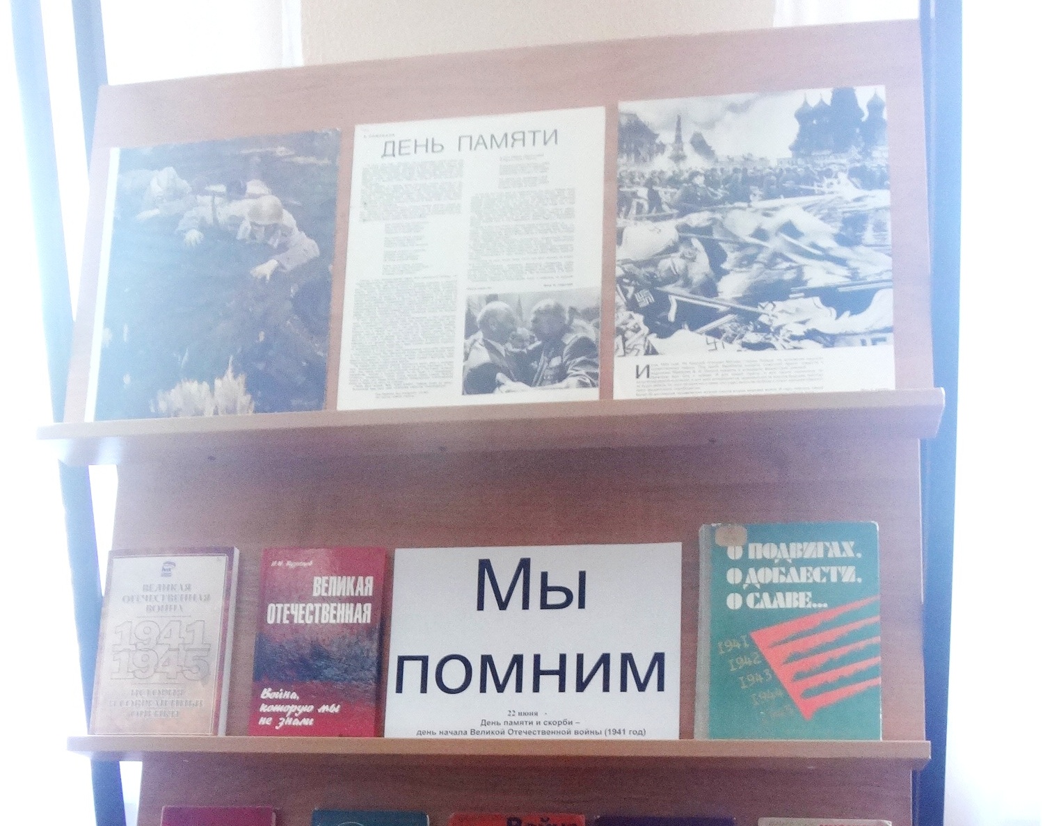 В центральной районной библиотеке п. Алексеевское проходит выставка книг, посвящённая 77-й годовщине начала Великой Отечественной войны - Дню Памяти и Скорби.