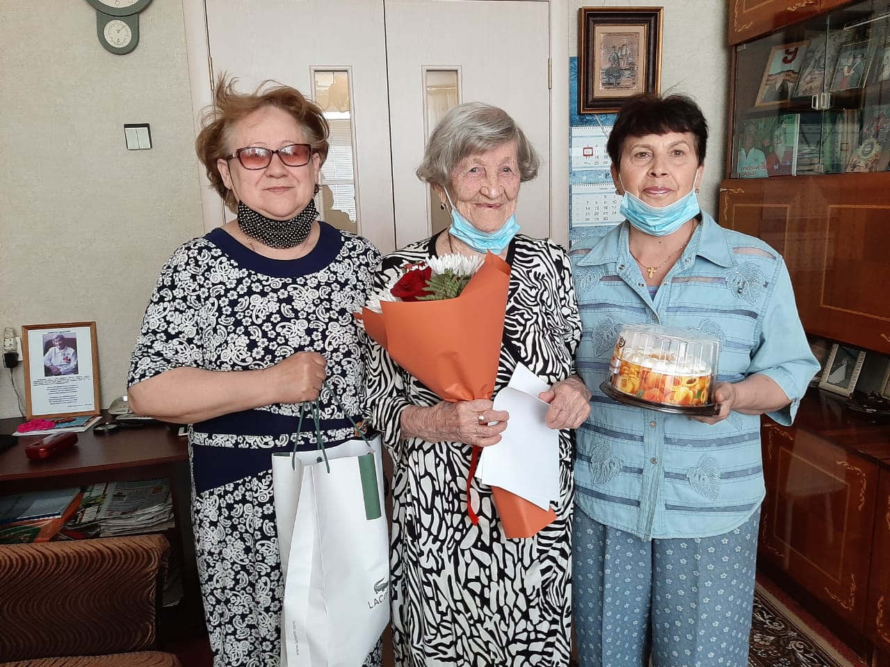 От имени Президента Российской Федерации Владимира Путина и мэра города Наиля Магдеева юбиляра поздравили заместитель главы администрации Автозаводского района Елена Альмухаметова, председатель правления Ассоциации содействия развития Территориальных общественных самоуправлений Автозаводского района Венера Наумкина, и.о. председателя совета ветеранов 27 комплекса Людмила Сайфуллина.
